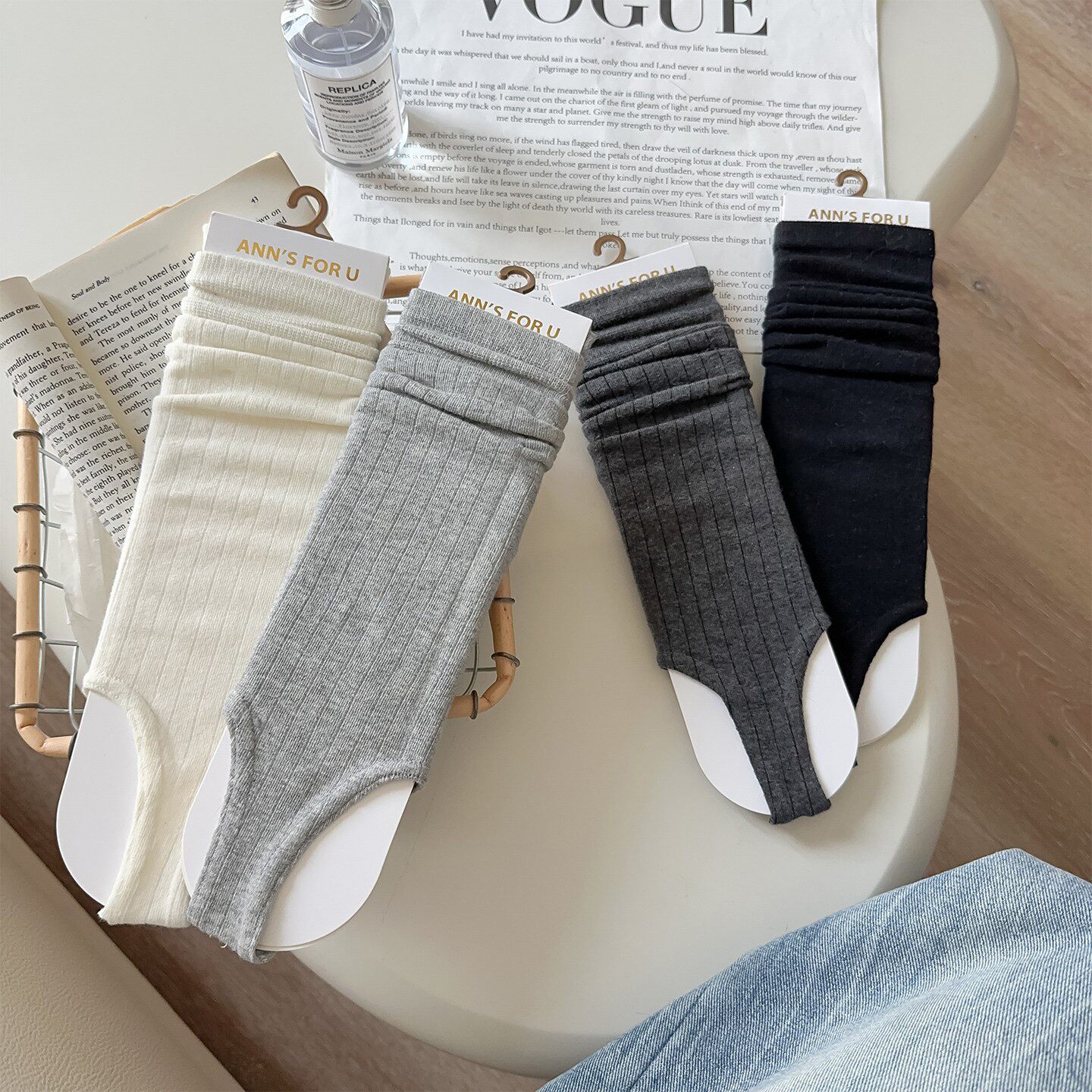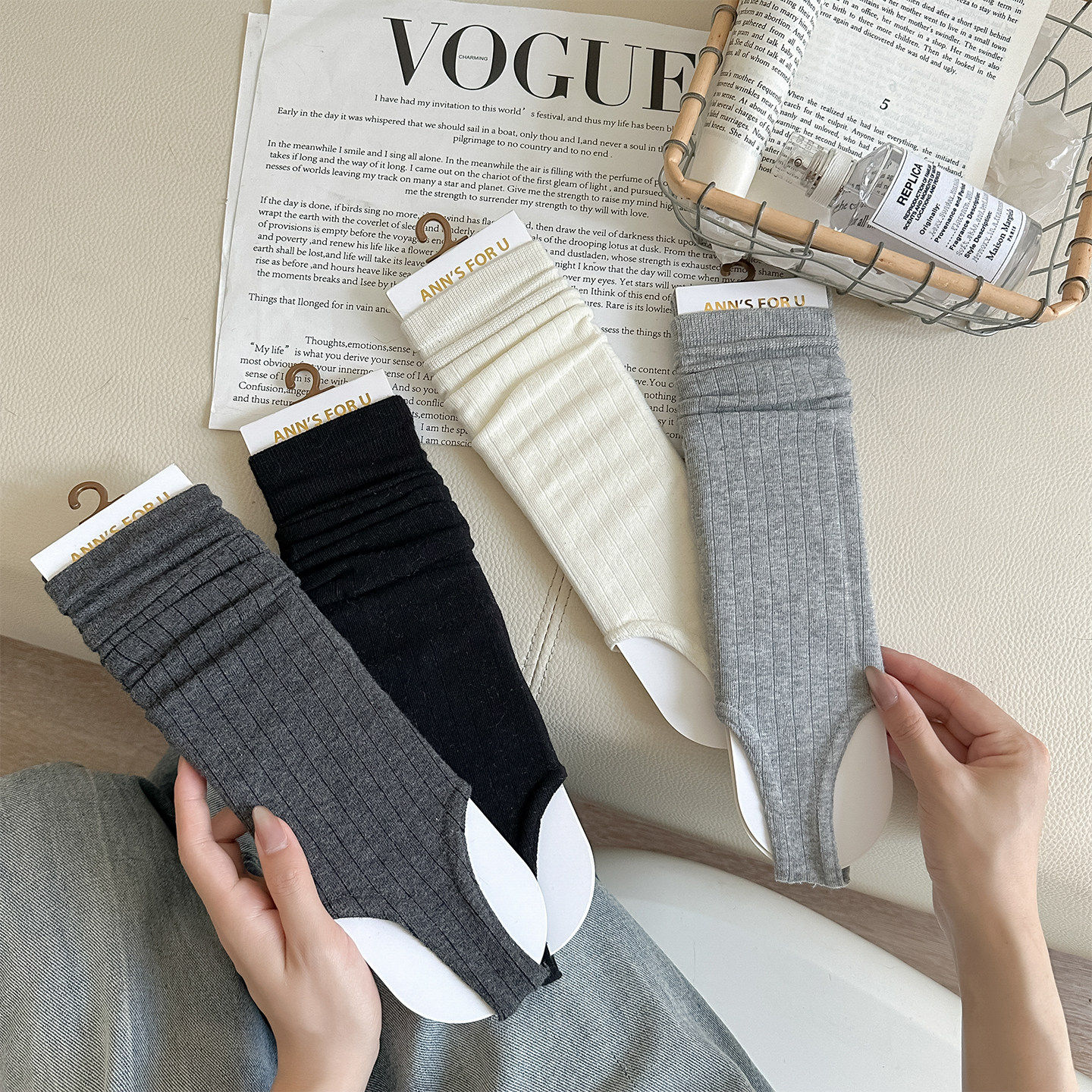 复古两穿人字夹脚堆堆袜子纯色春夏踩脚袜套秋冬季长筒显瘦小腿袜