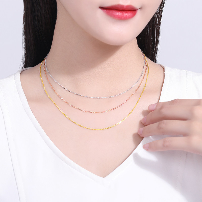 千年珠宝18K金项链女素链闪O链玫瑰金套链O字链锁骨链送女友正品