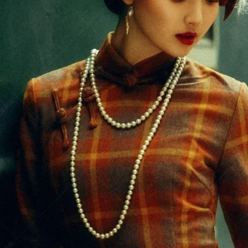 搭配旗袍珍珠项链饰品多层叠戴中长款颈链女双层锁骨链毛衣链055