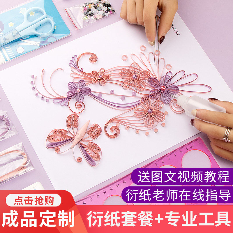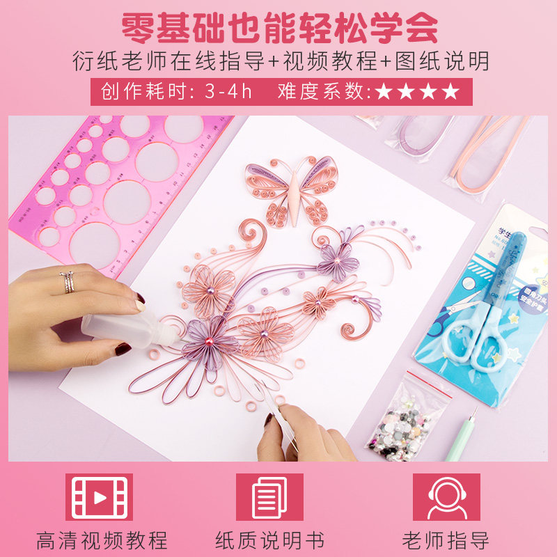 A4折纸衍纸手工材料包线稿图衍纸画diy成品作品彩纸手工纸幼儿园