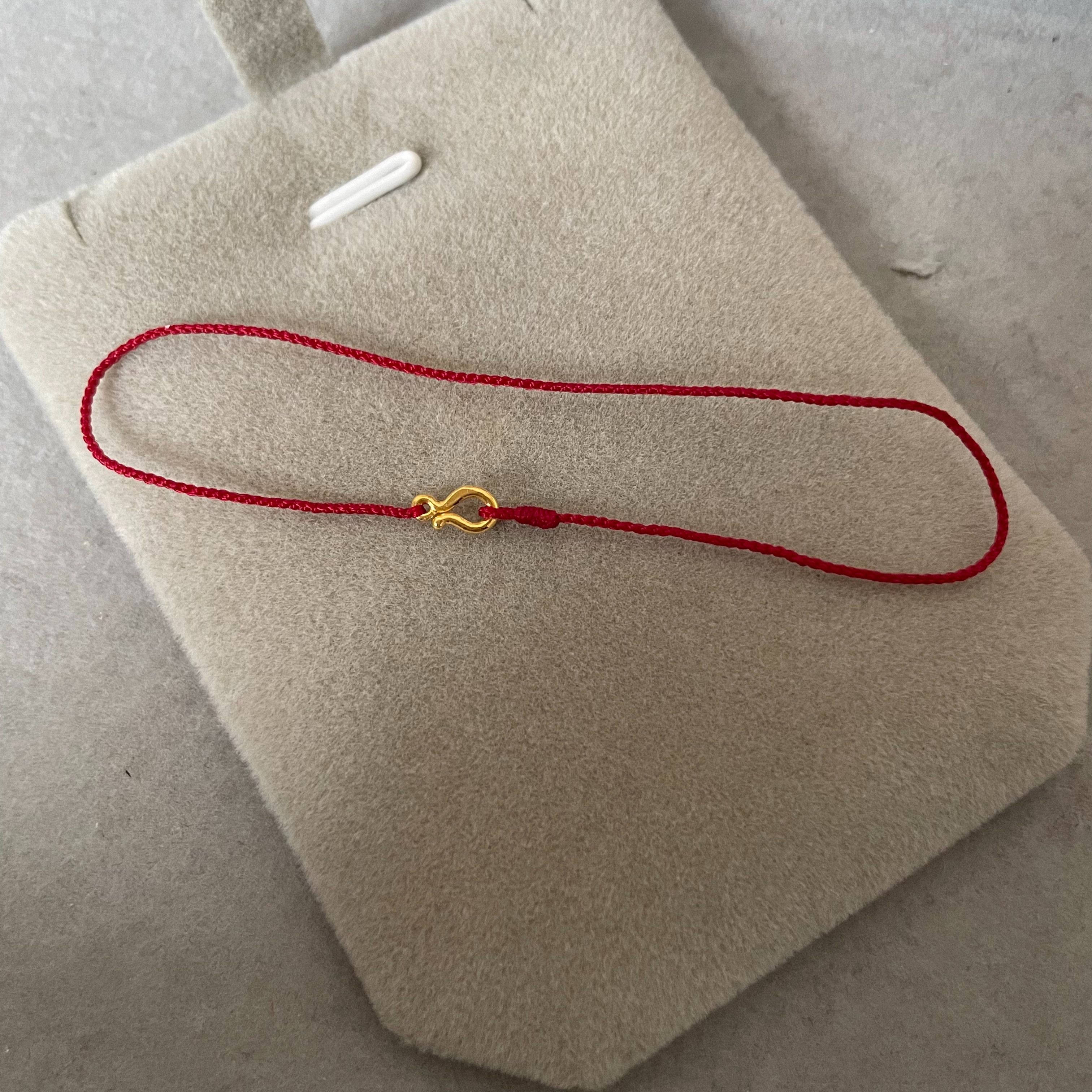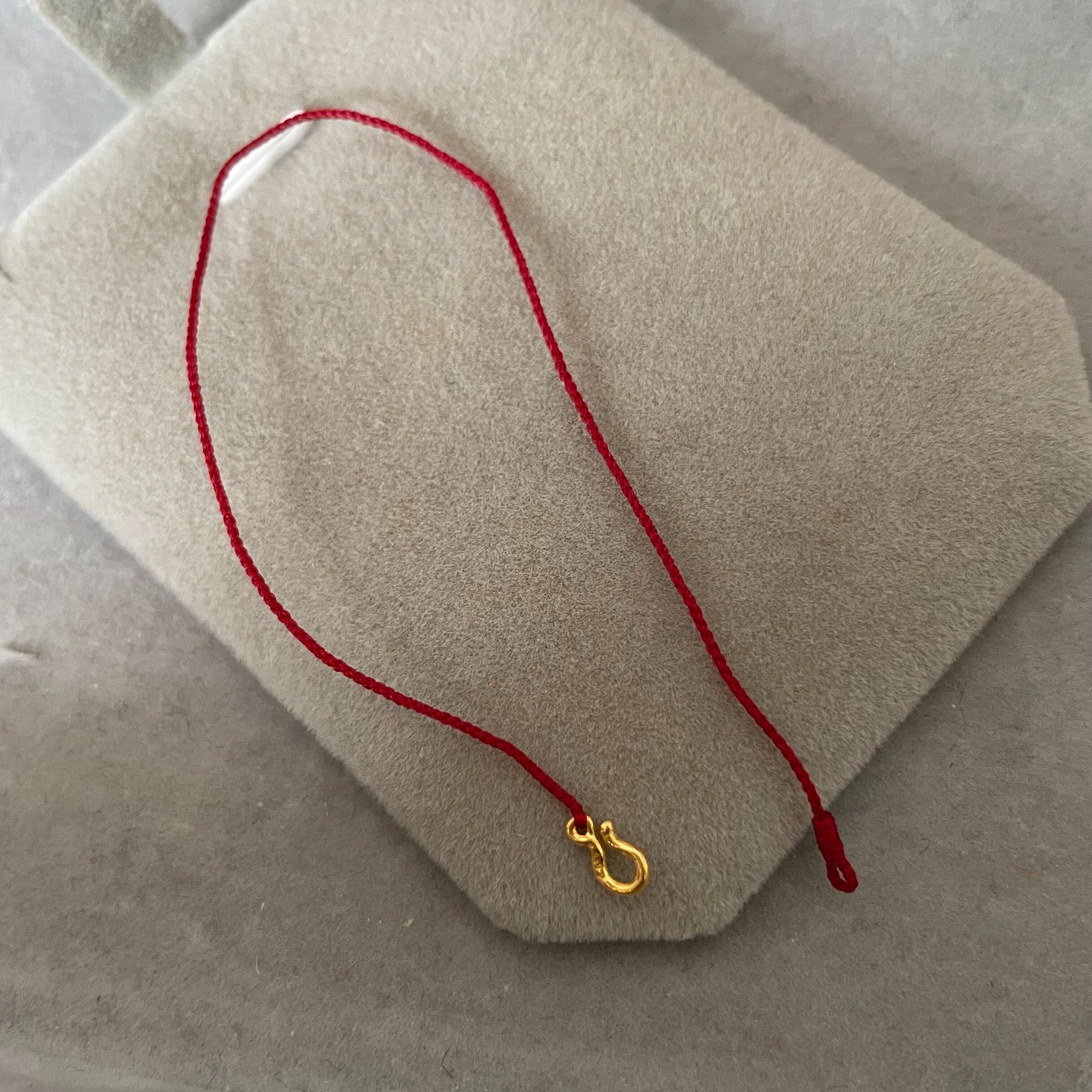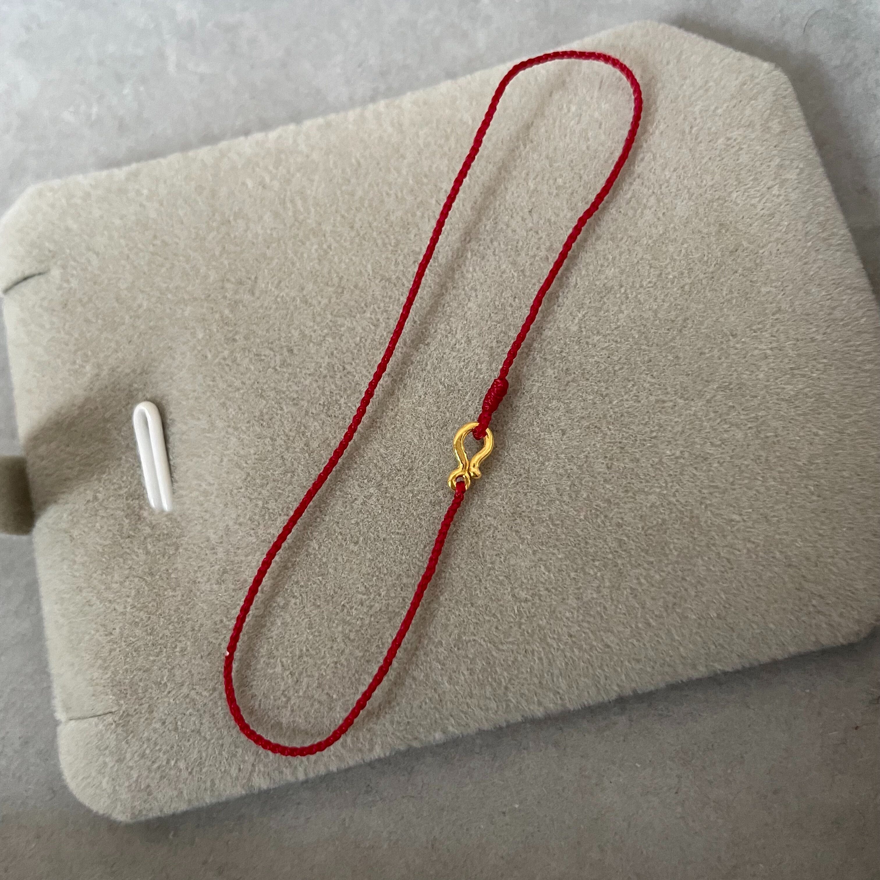 巨细四股辫足金999黄金小虾扣本命年纯手工编织素红绳手链脚链