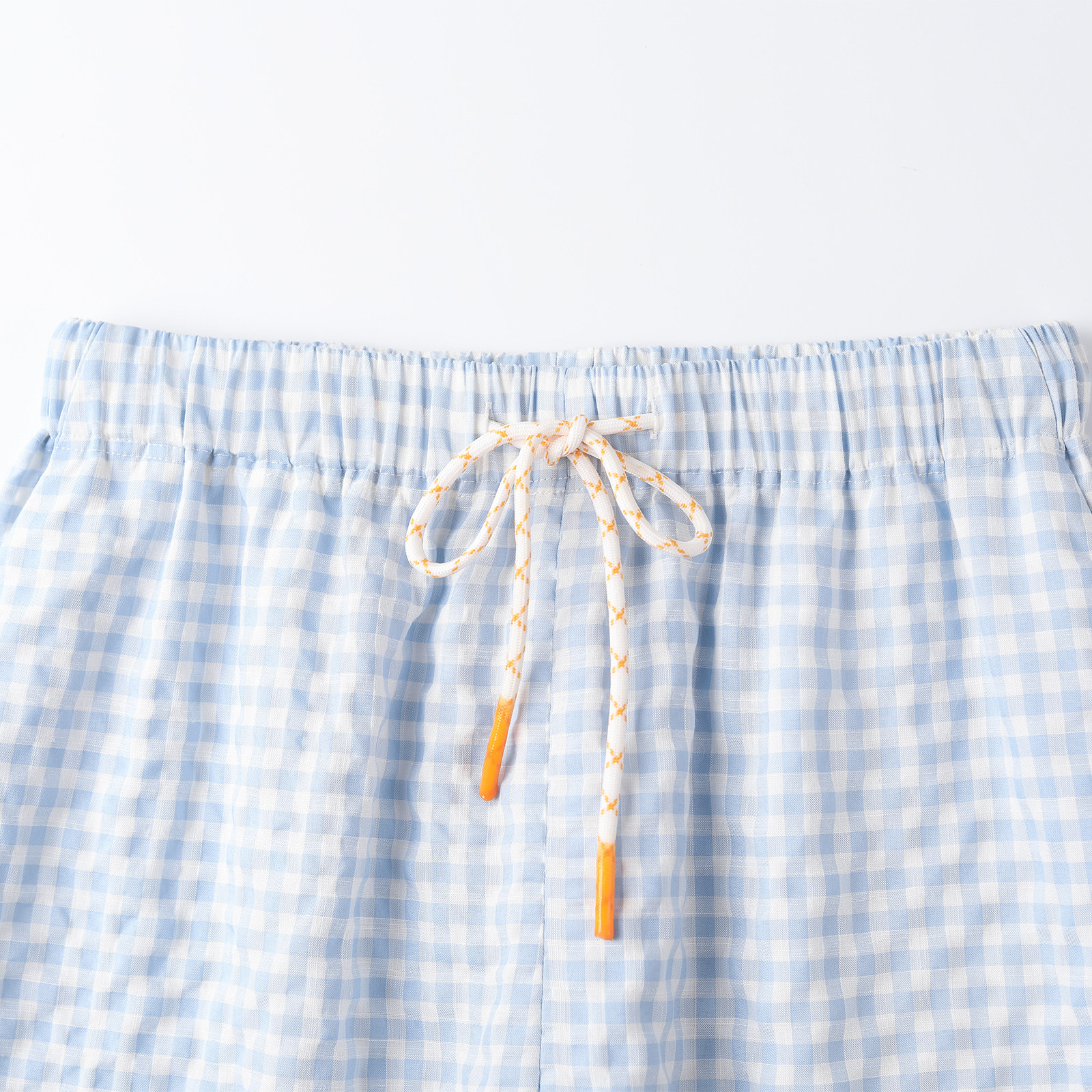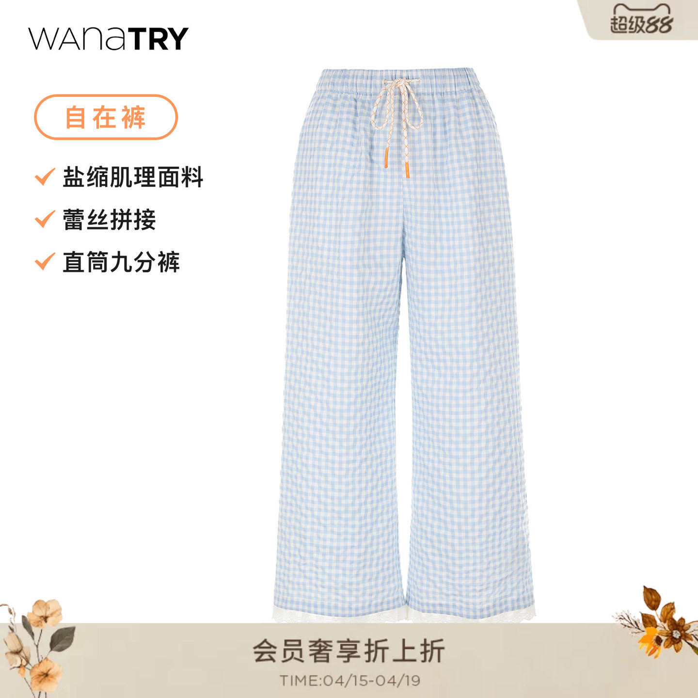 wana try盐缩褶皱感海洋系休闲蓝白格纹直筒九分裤2026夏季新款