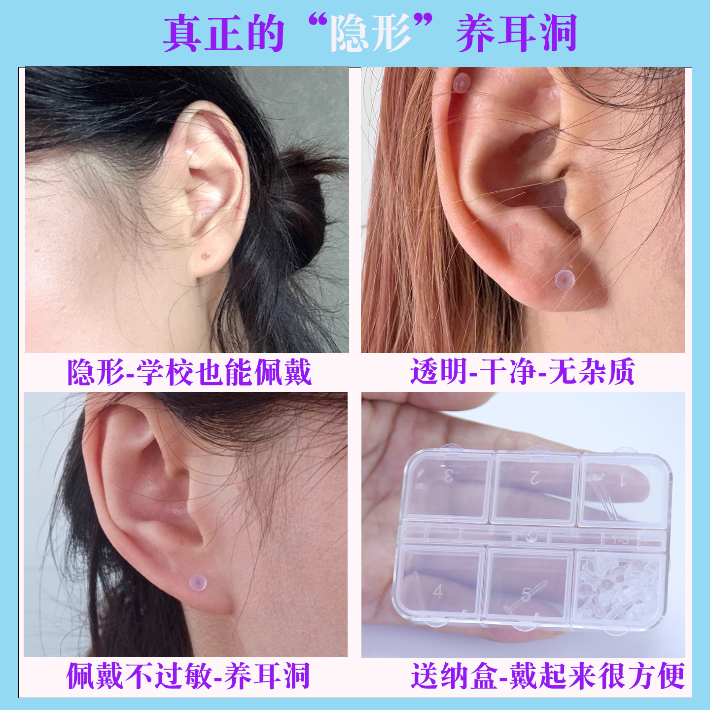 0.8mm医用树脂耳钉扩耳洞防闭合透明隐形养耳洞防过敏学生防堵针