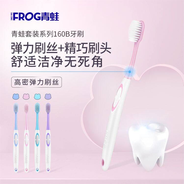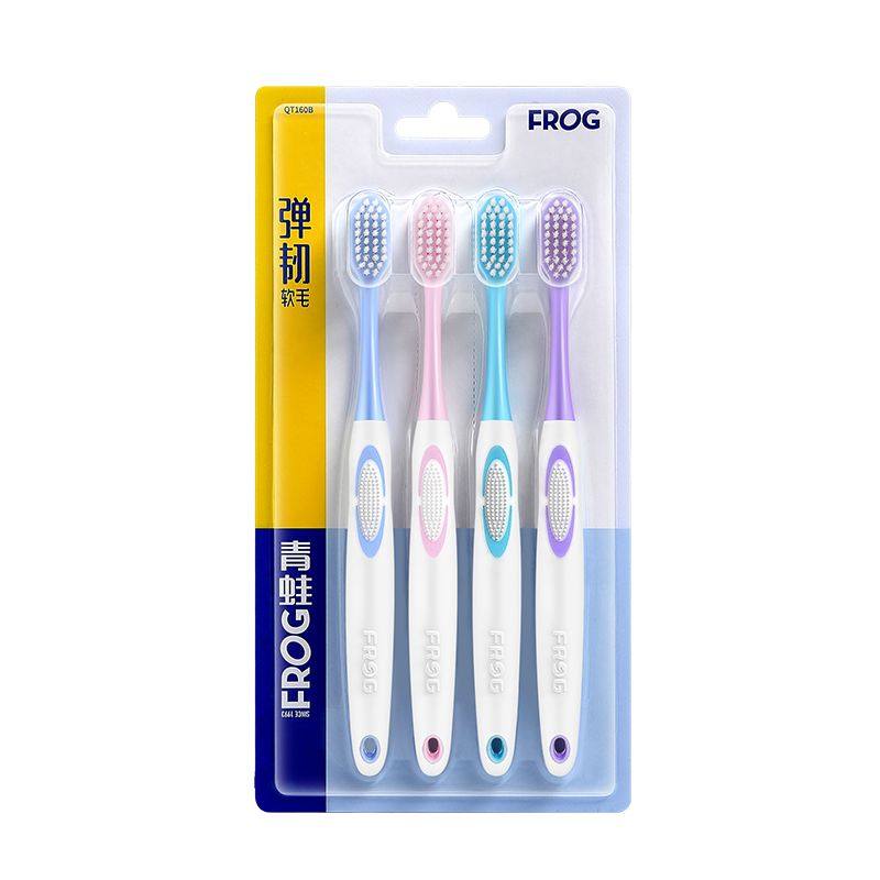 青蛙160B牙刷4支装护龈舒适洁净精巧简约家庭装实惠装好用软毛