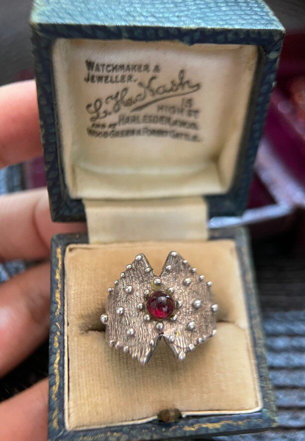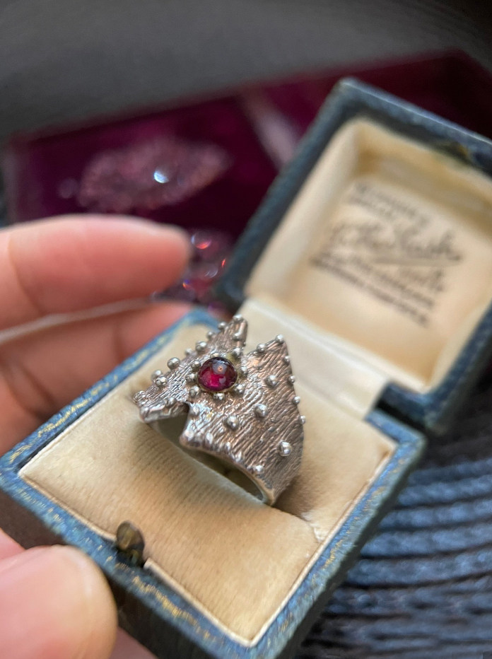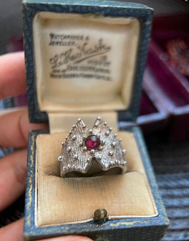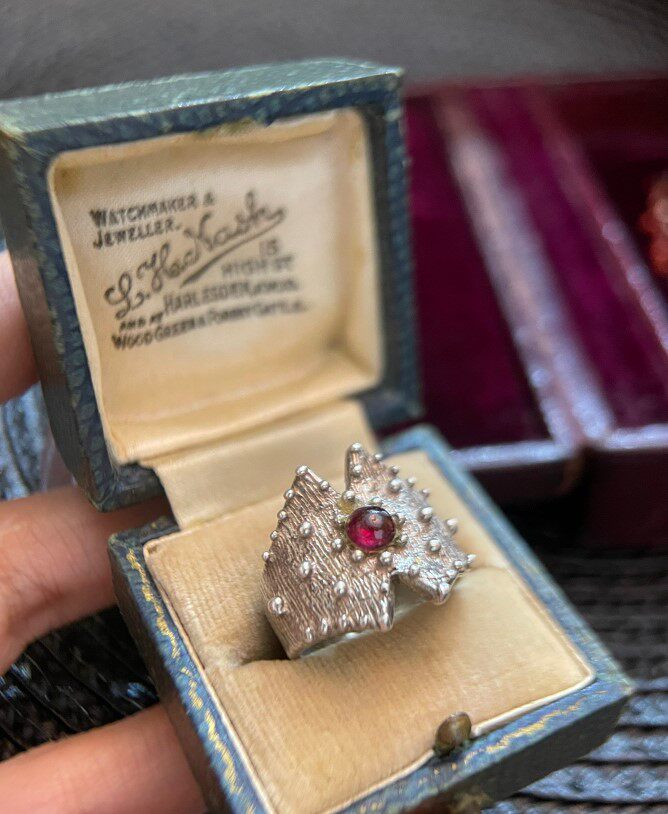 意大利回流设计古董首饰925银戒指指环红石榴石复古巴伐利亚开口