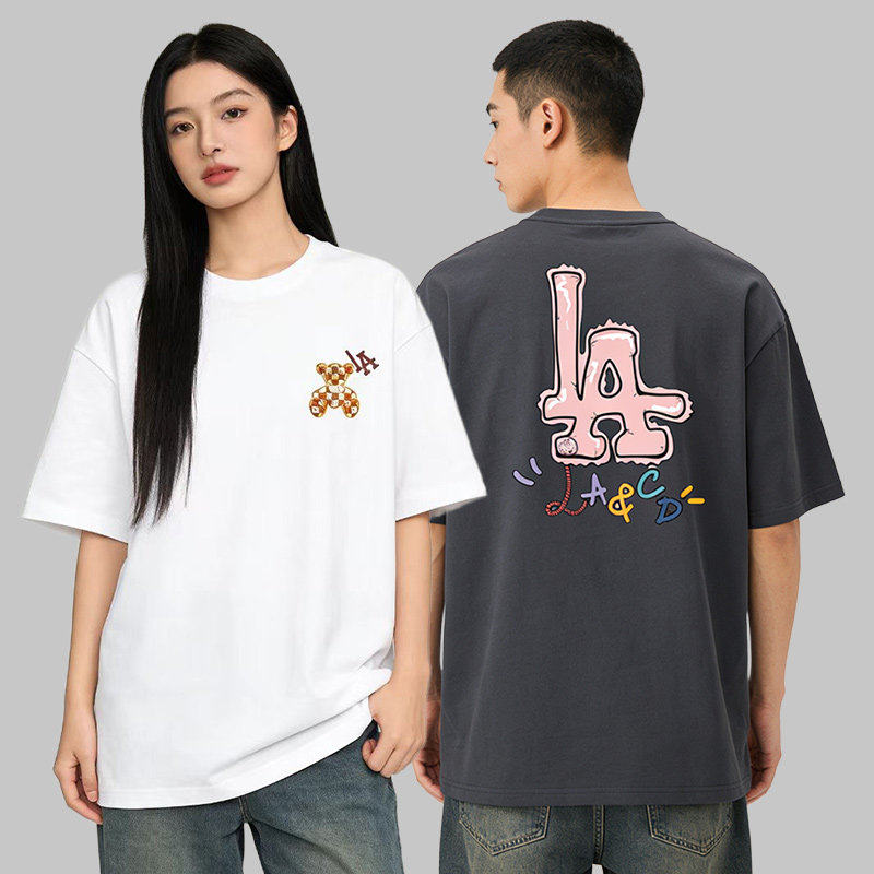 短袖T恤男女情侣落肩袖宽松百搭印花上衣白色1