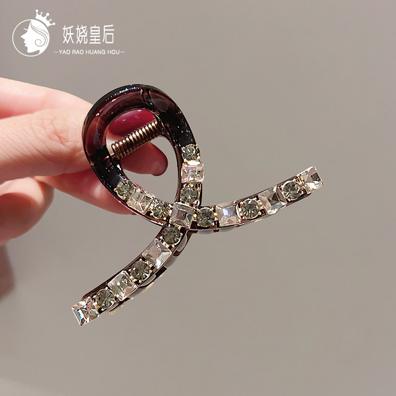法式简约发夹女后脑勺亚克力抓夹发抓高级感水钻优雅气质鲨鱼夹子