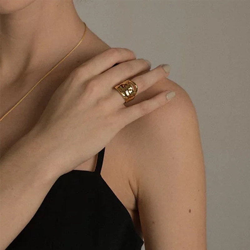 Unfolds复古宽戒指女轻奢小众中古精致食指ins欧美高级感2022年潮