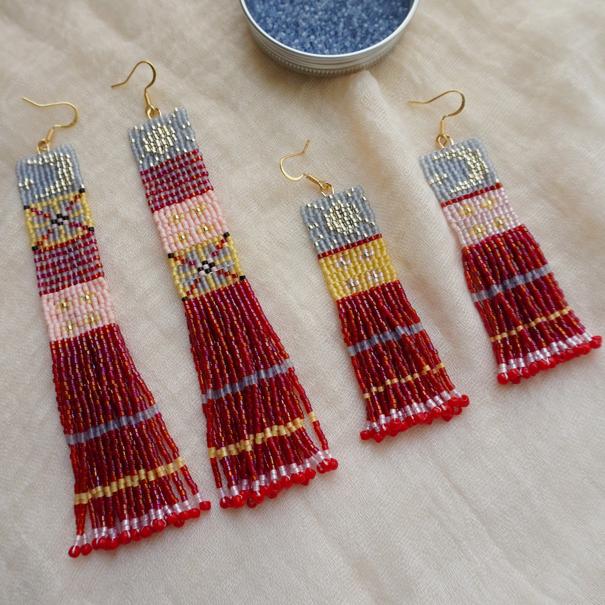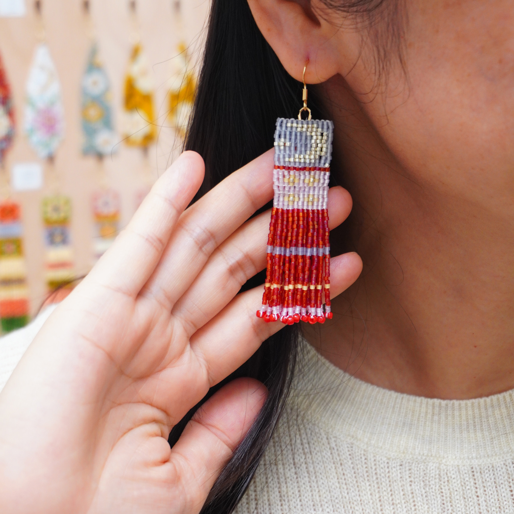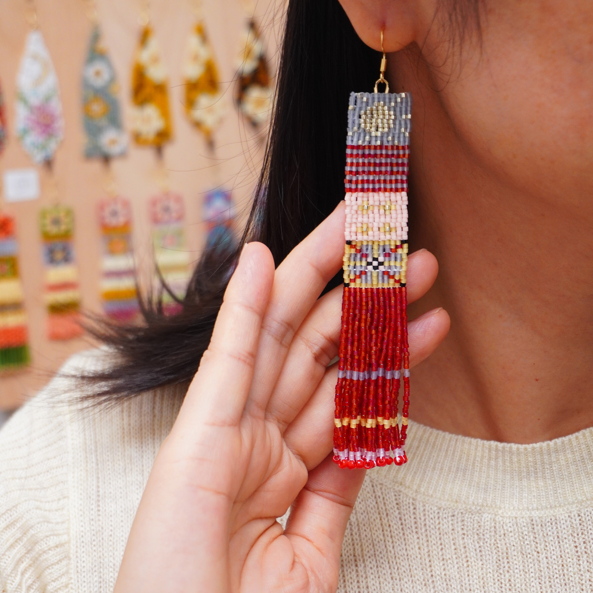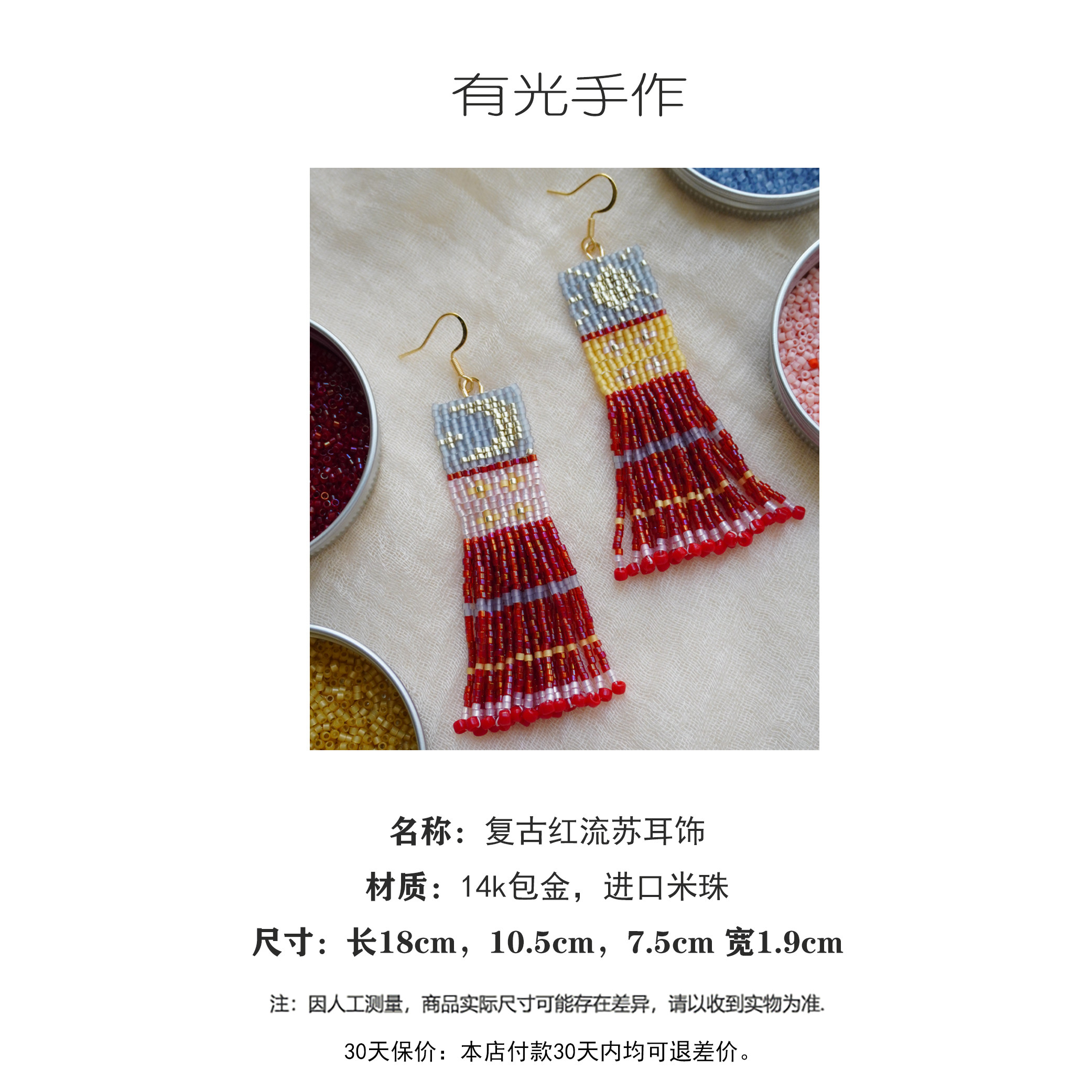 有光手作原创设计师民族风超长扫肩复古串珠编织流苏耳环手工耳饰
