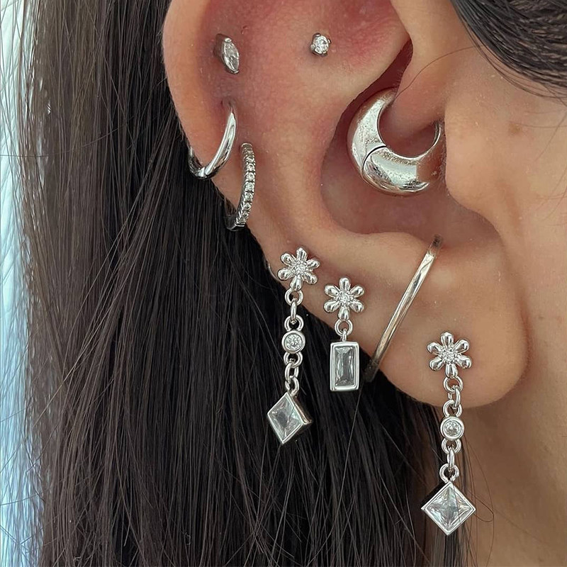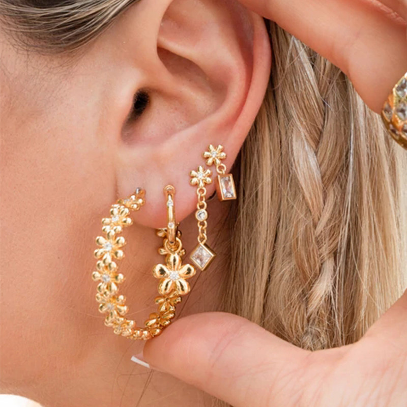luv aj花朵流苏耳环女镶钻不对称耳饰欧美小众多耳洞耳钉组合套装