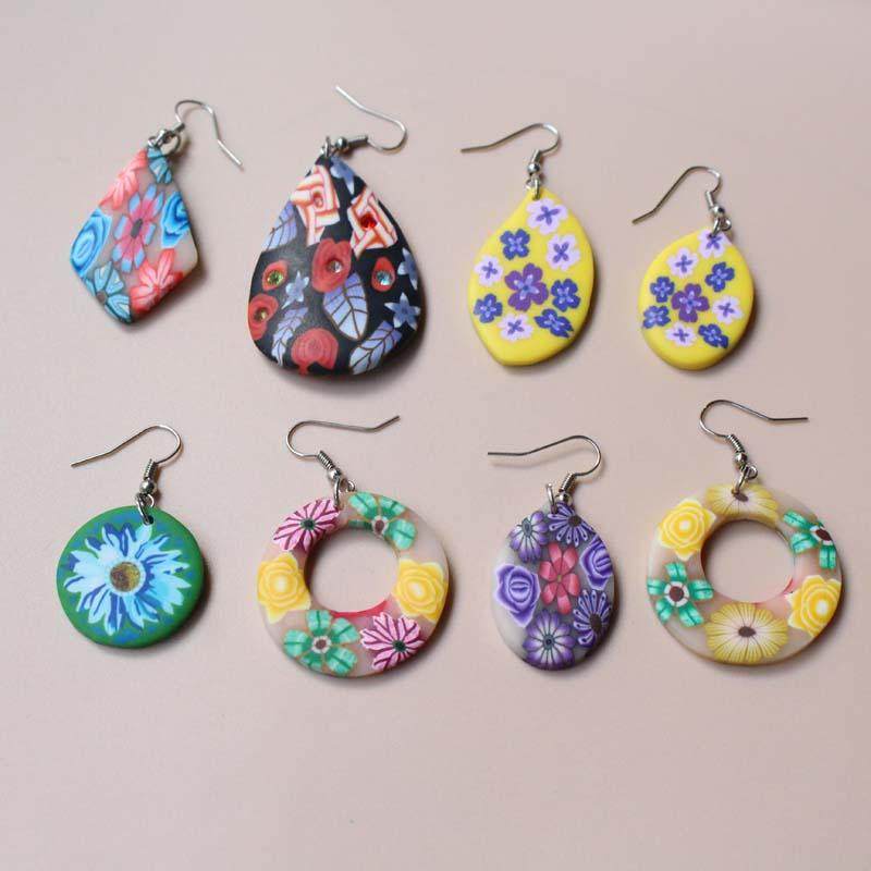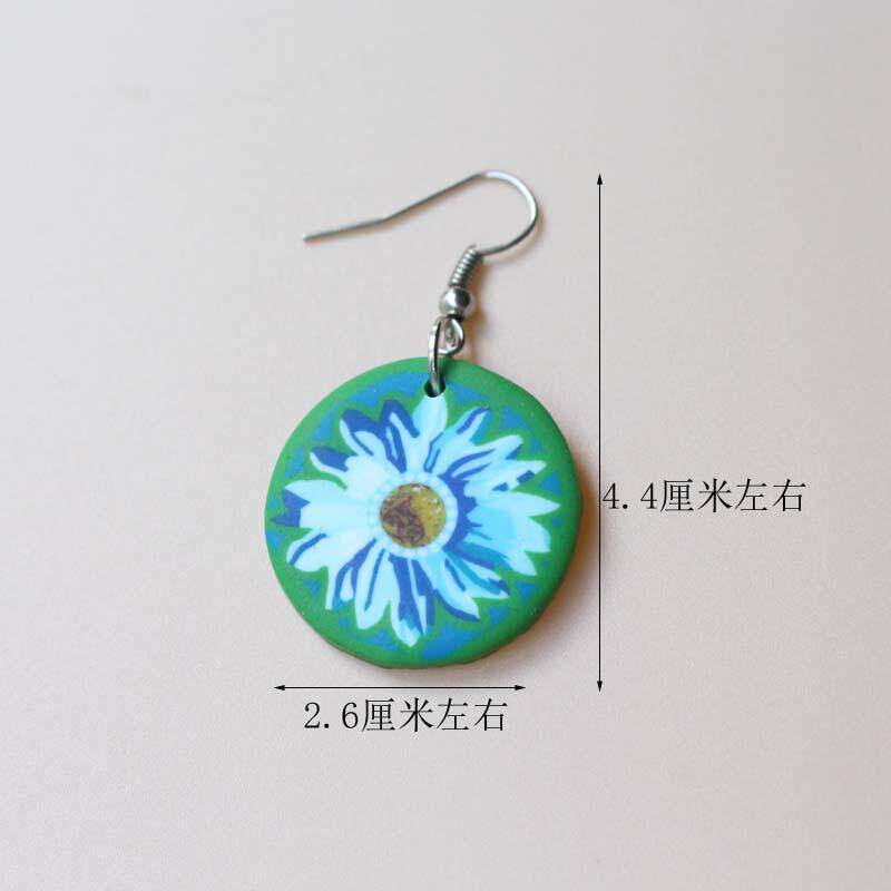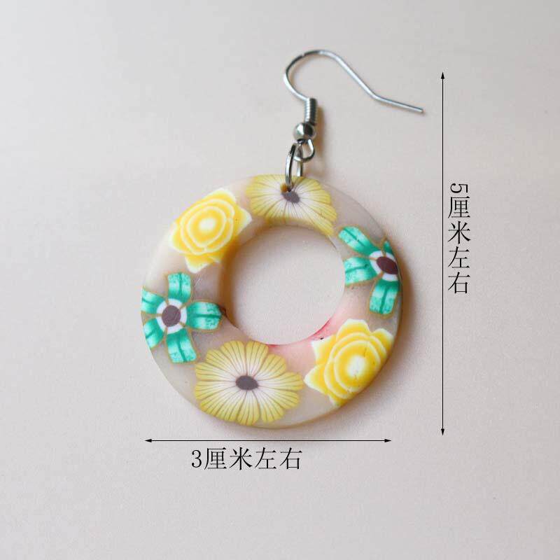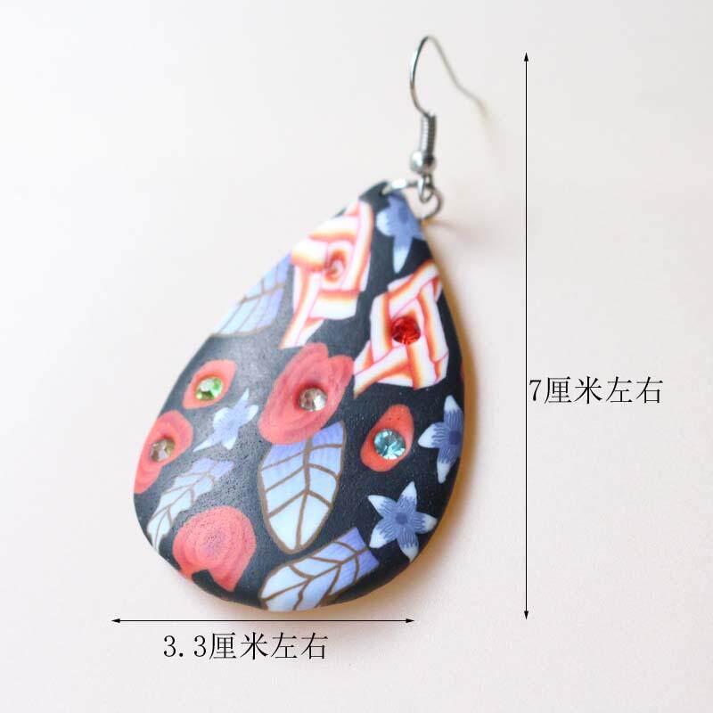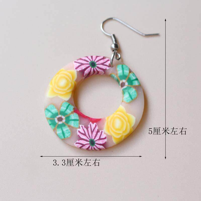 处理软陶耳环黑色水滴粉色圆环小花绿雏菊民族风耳环