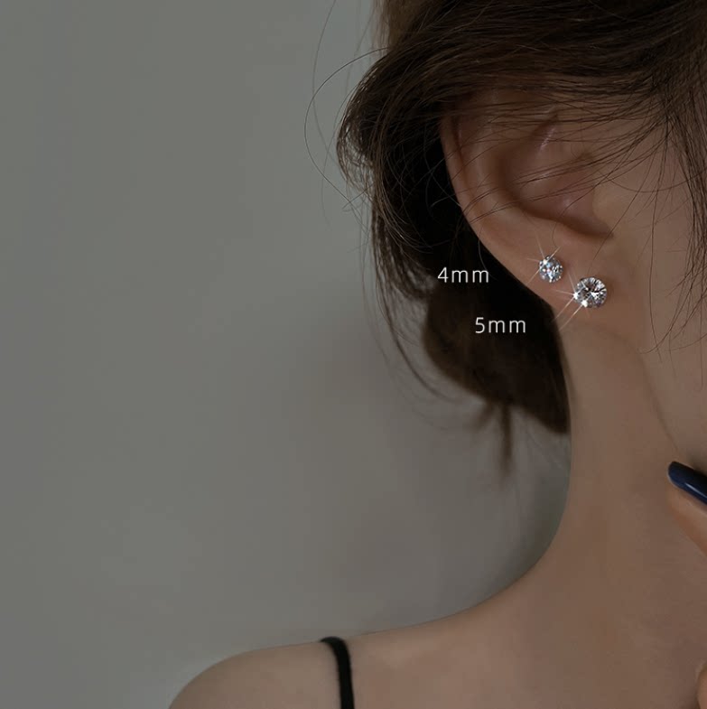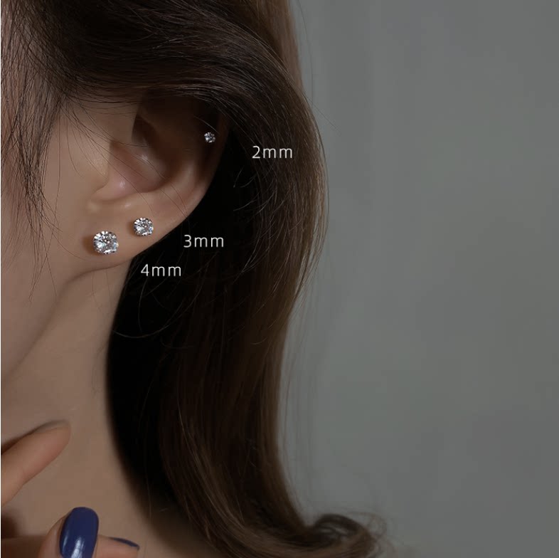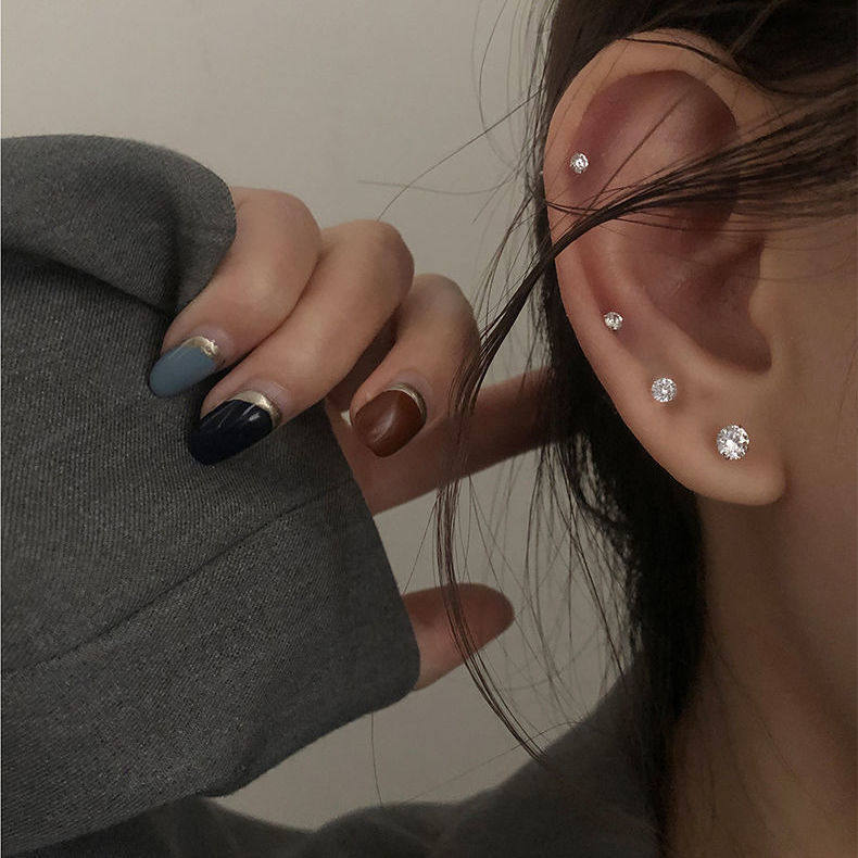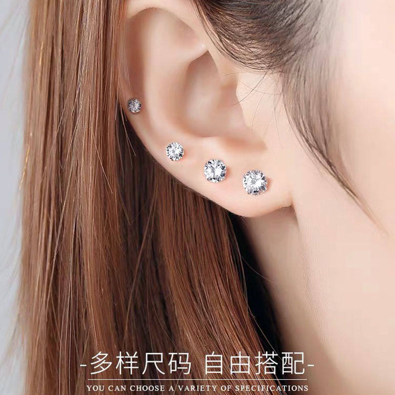 超闪锆石925银小耳钉小巧百搭水钻简约耳环套装男女耳骨钉耳饰