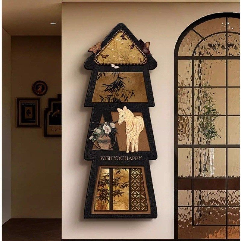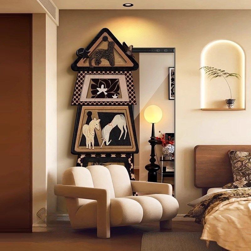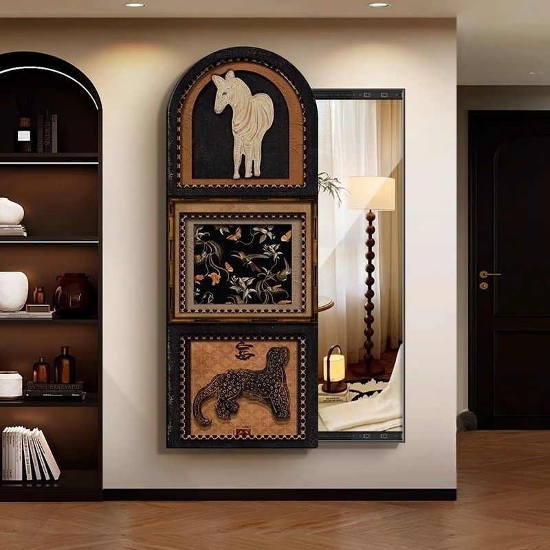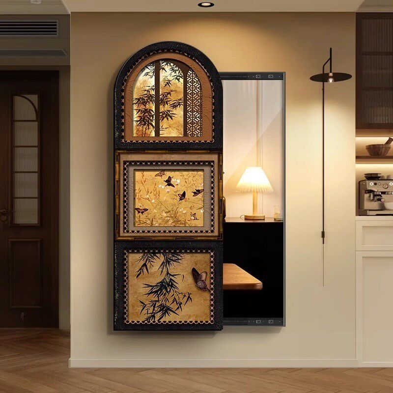 法式中古风暗藏式镜子装饰画推拉镜客厅卧室玄关壁挂式全身镜挂画