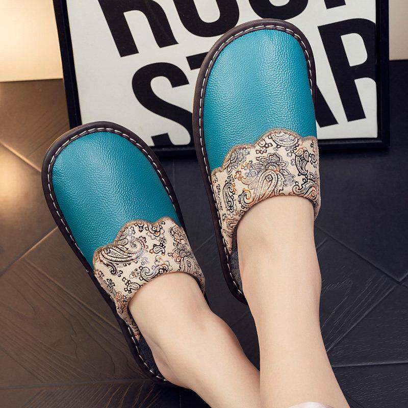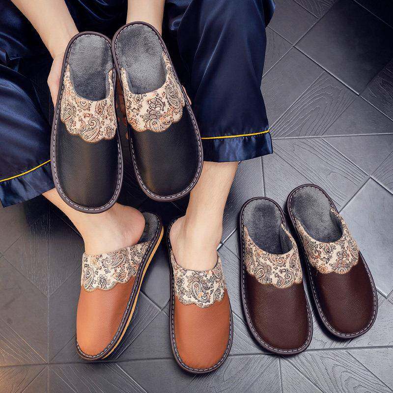 真皮拖鞋居家女冬季室内家用老人保暖防滑防水牛皮棉拖鞋男牛筋底