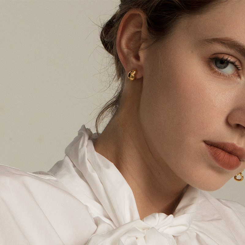 UNFOLDS经典金豆元宝耳钉925银针耳饰女气质百搭小众设计63OAKAVE