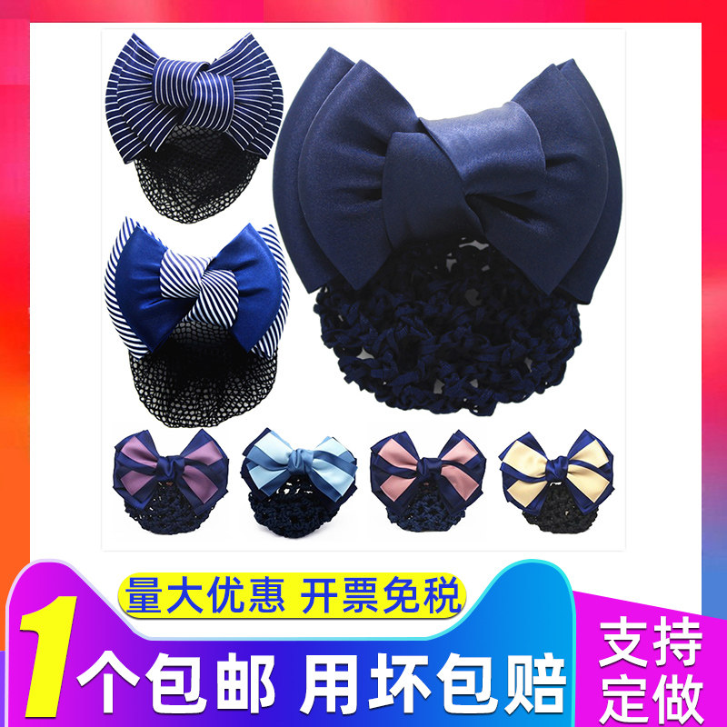 职业头花韩版蝴蝶结发夹发饰银行护士酒店空姐带盘发头饰工作网兜