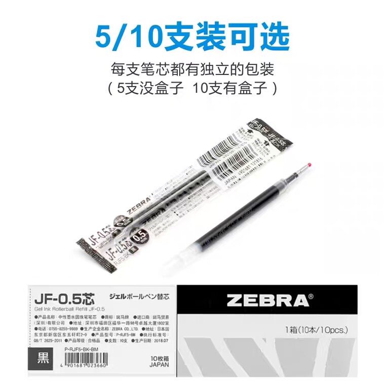 日本 zebra斑马中性笔替芯JF-0.5适用jj15按动水笔笔芯0.5mm
