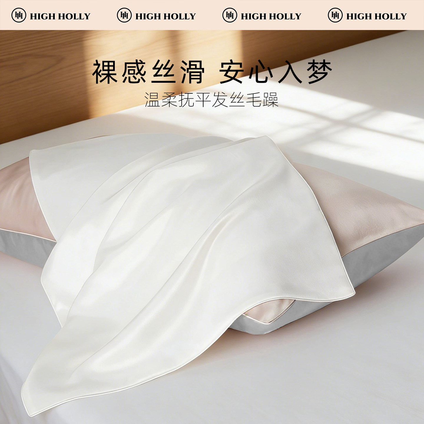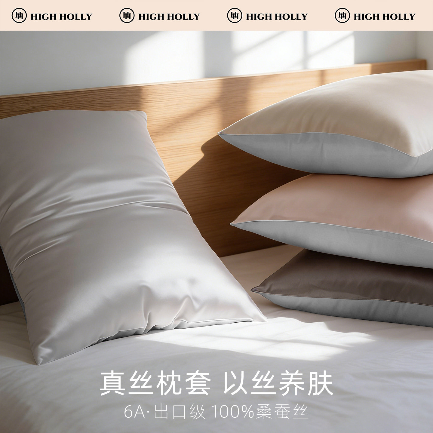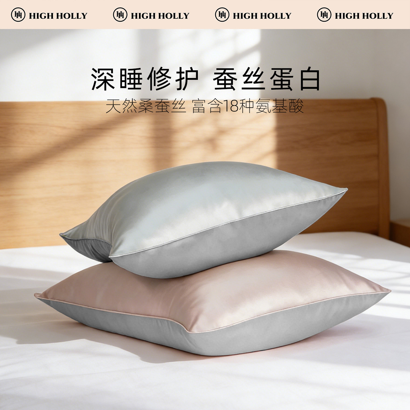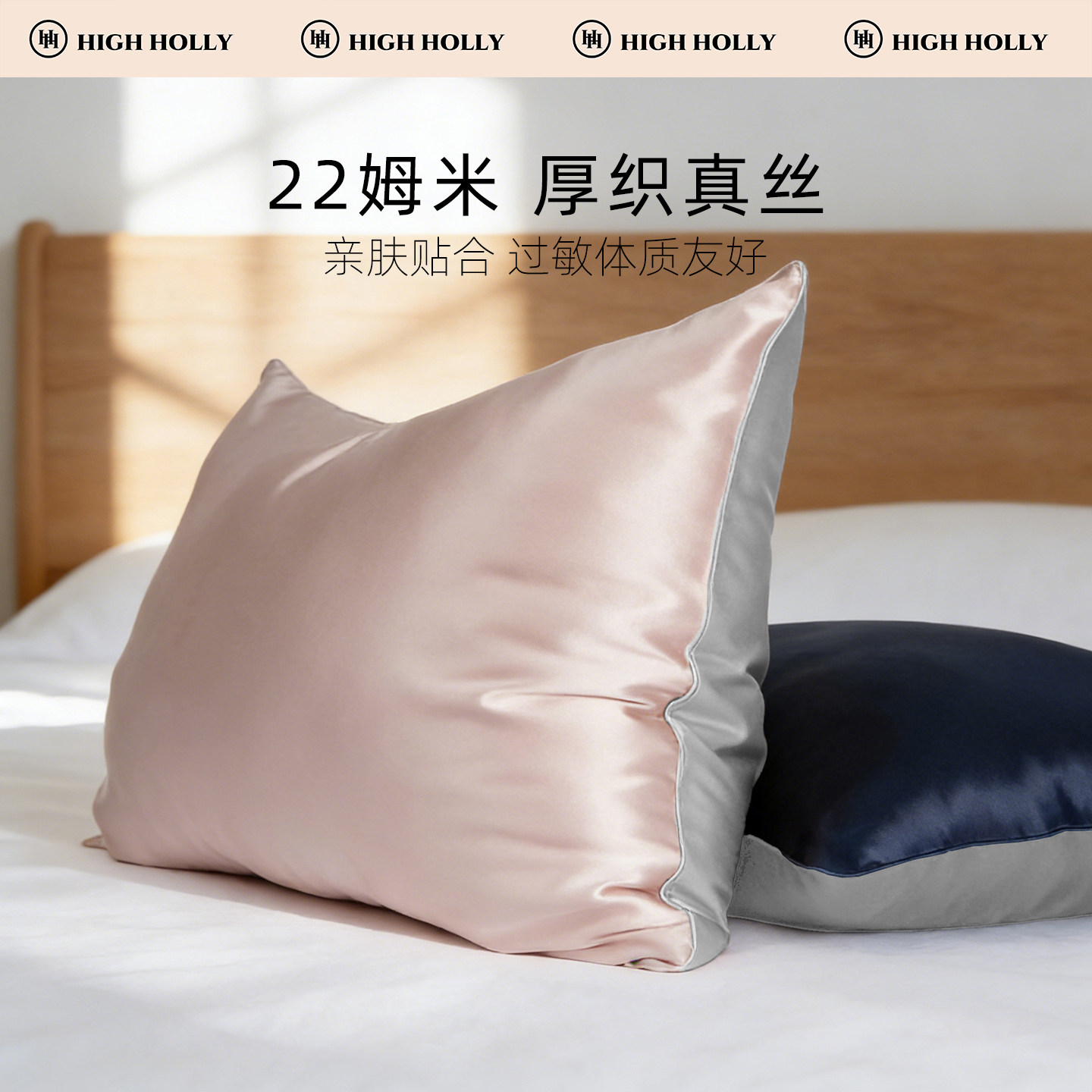 highholly22姆米真丝枕套100桑蚕丝礼盒枕巾单双面一对乳胶枕头套