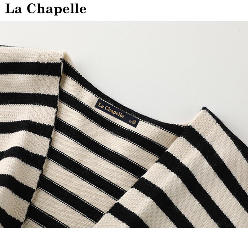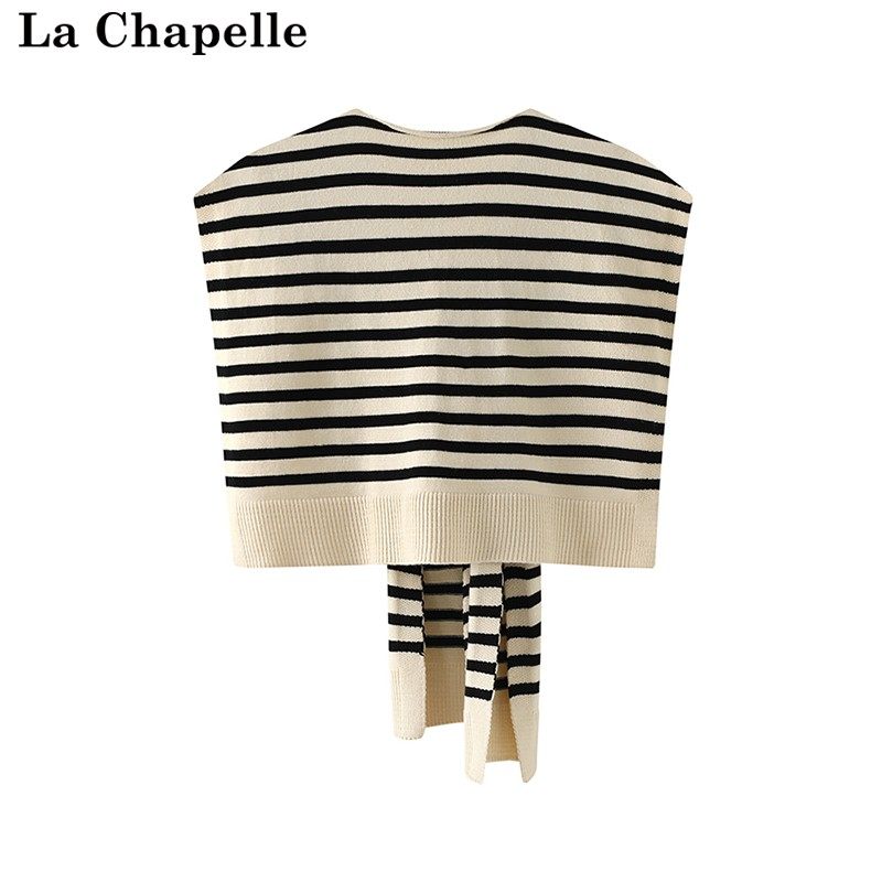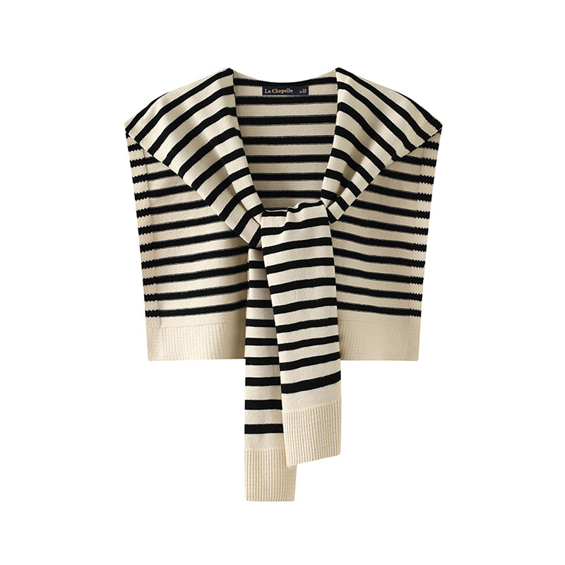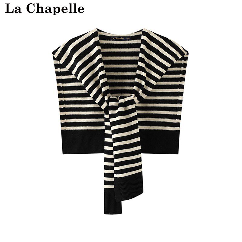 拉夏贝尔/La Chapelle新款外搭休闲条纹撞色针织披肩百搭围巾女士