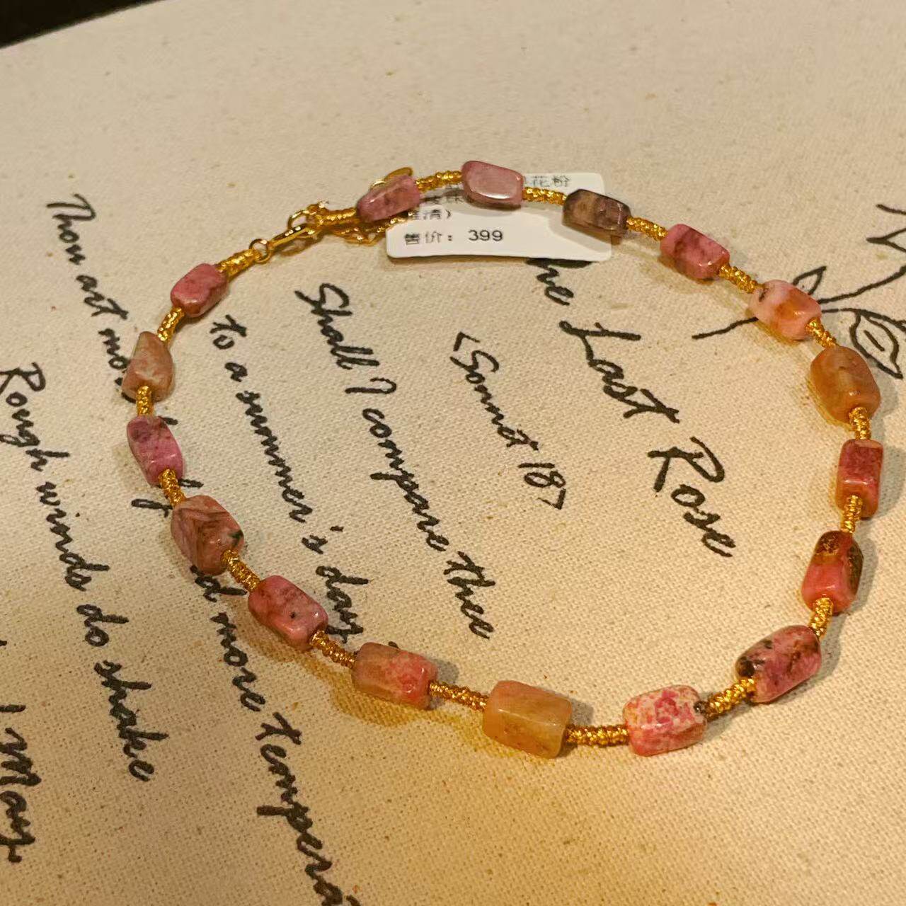 南非舒俱来樱花粉四棱珠脚链S925(雅清)AZB10829