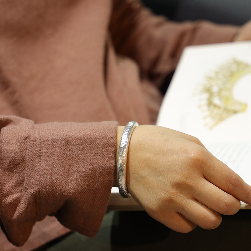 【素】熙素锤纹贵妃镯纯手工银手镯女定制订做999足银实心手饰