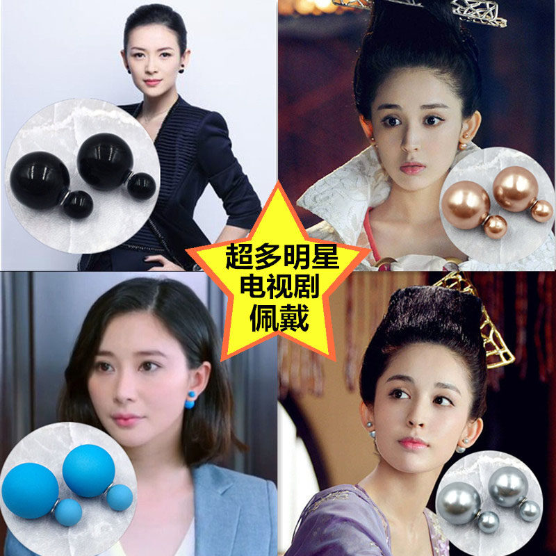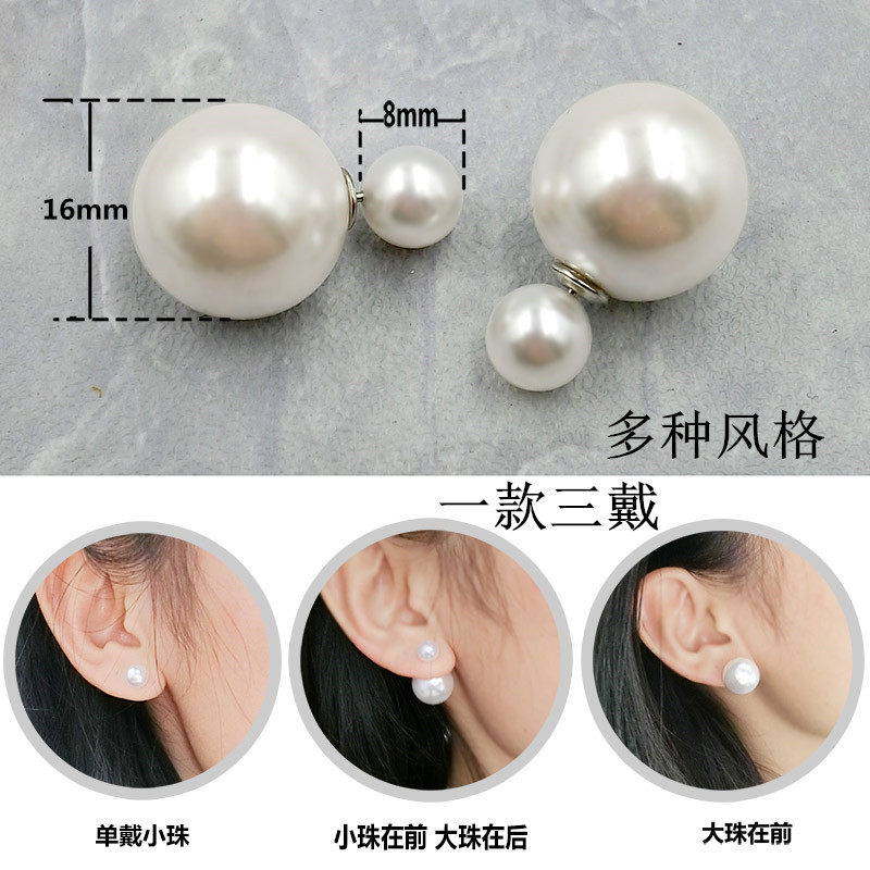 双面可佩戴耳饰欧美时尚流行夸张大小双面珍珠耳钉复古耳环女包邮