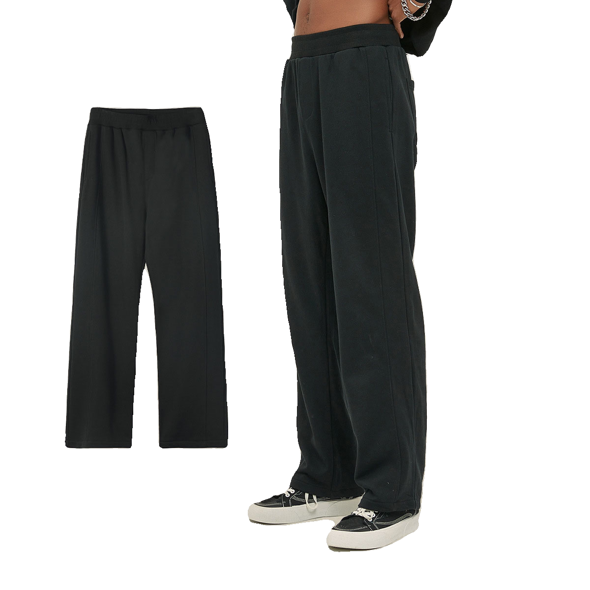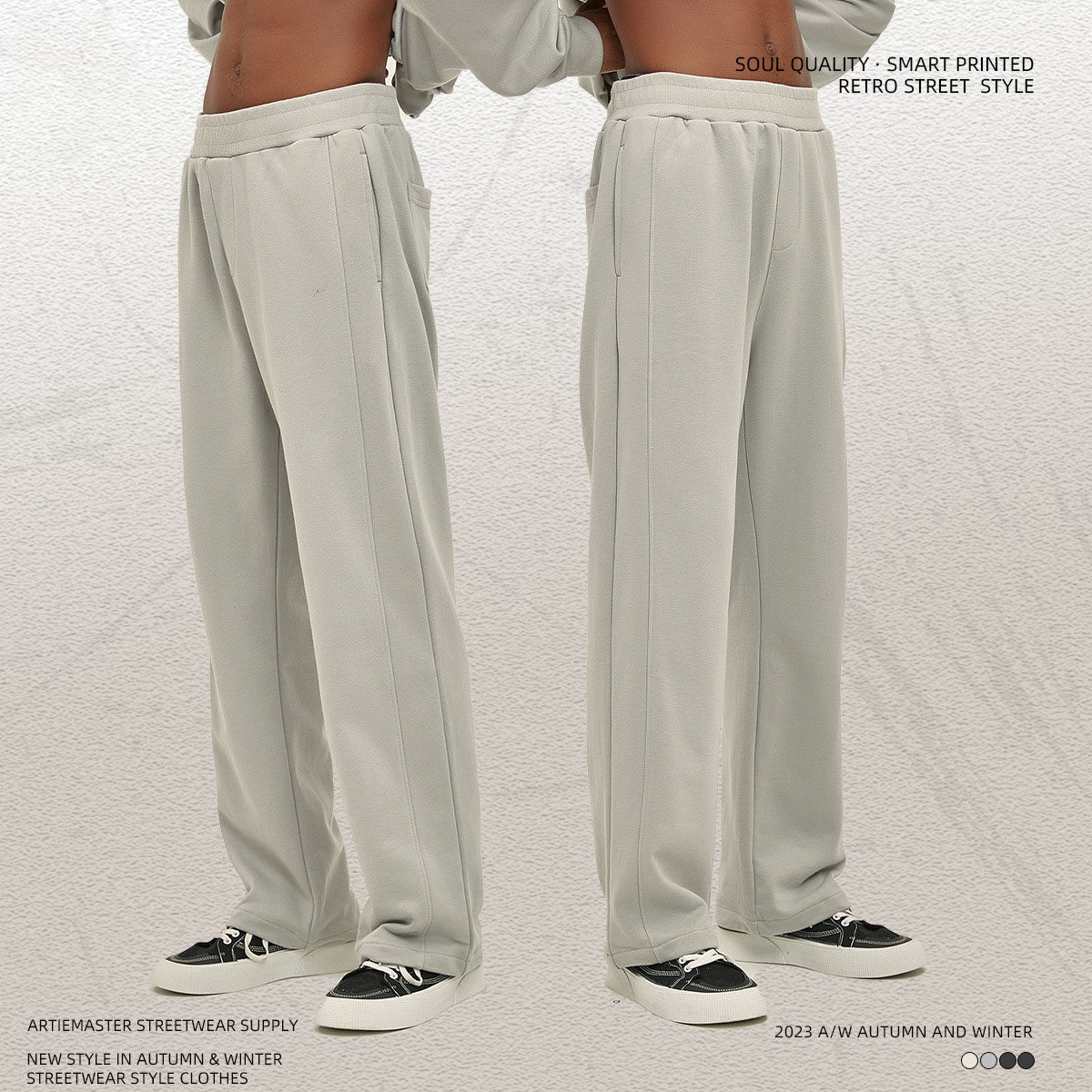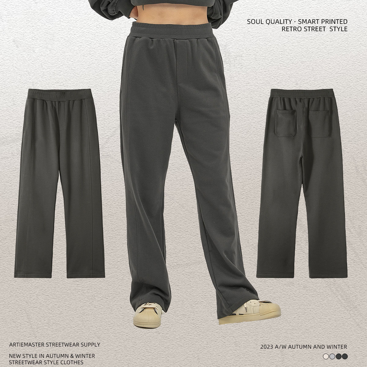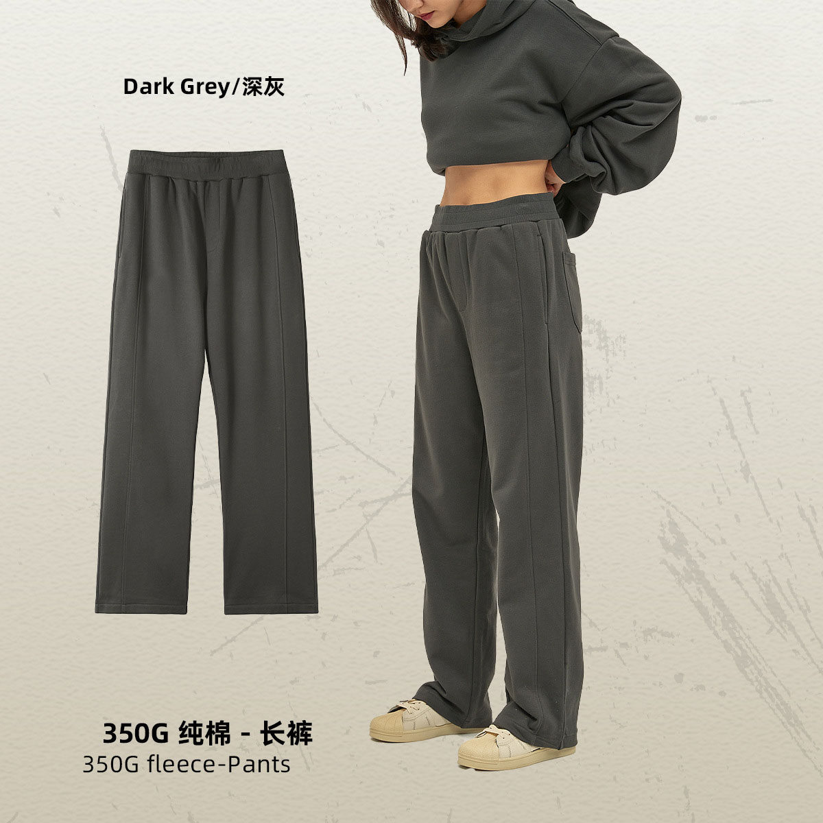 秋冬新款潮牌直筒宽松350G毛圈长裤男 拼接阔腿抽绳男休闲裤高街