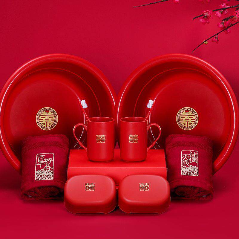 喜盆陪嫁红色脸盆结婚用品大全出嫁婚礼婚庆新娘嫁妆塑料洗脸盆子