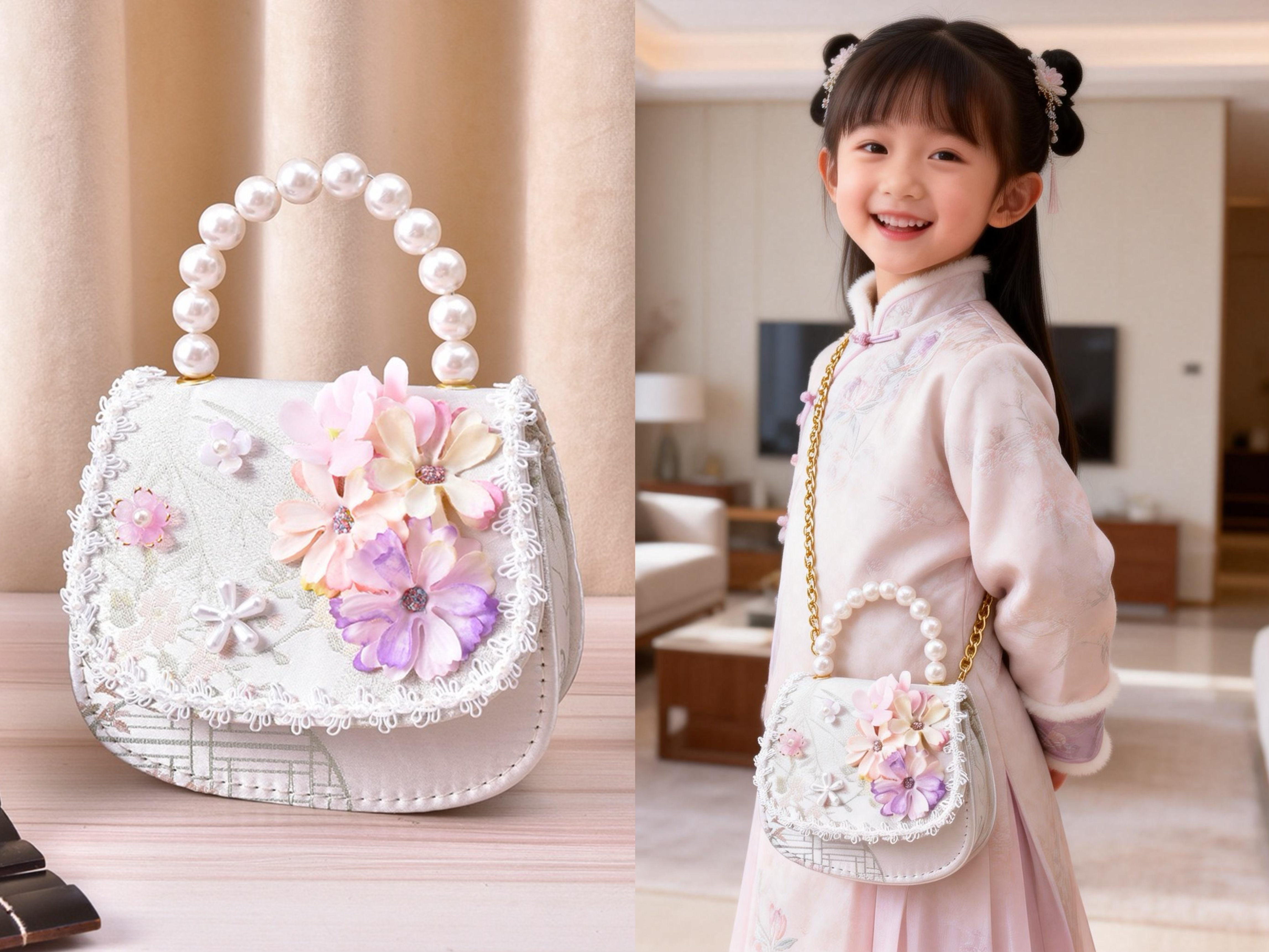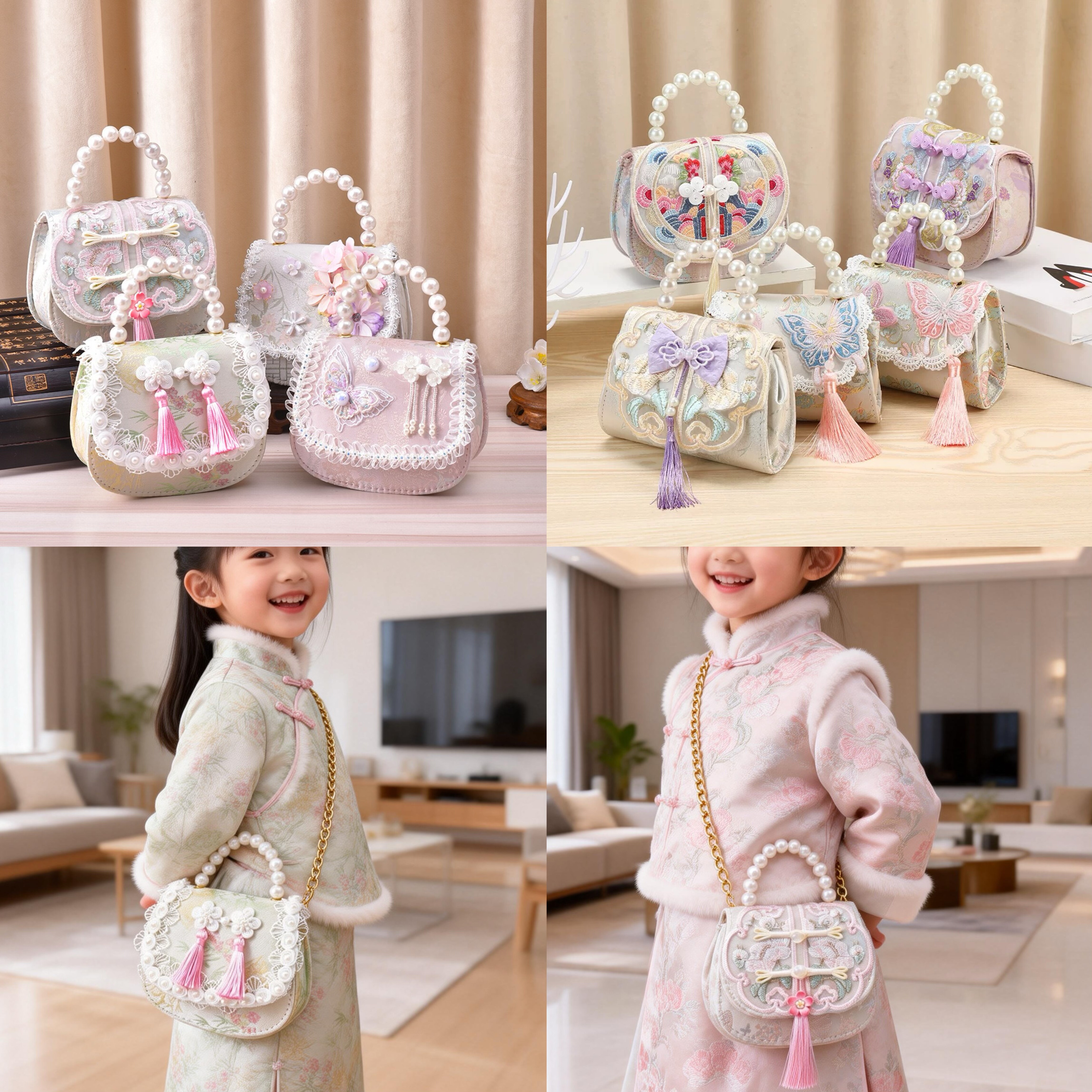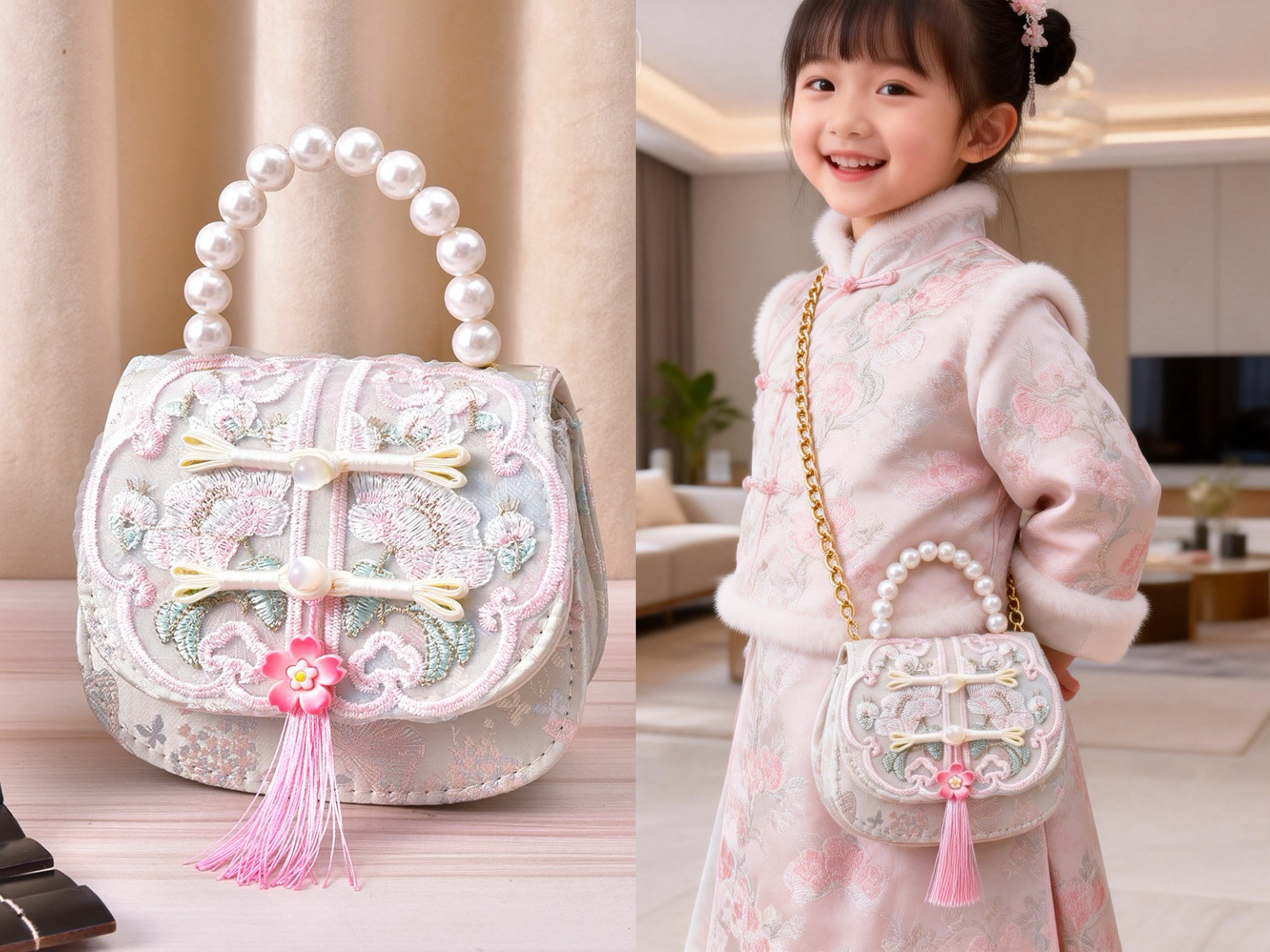 2026珍珠包小朋友精致中国风古风包女孩子儿童包新中式刺绣斜挎包