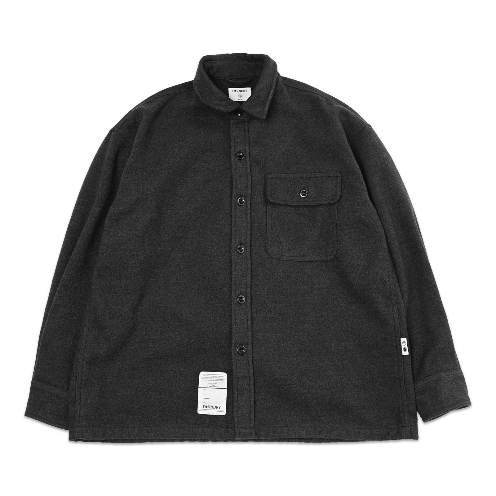foundry 25AW日系衬衫夹克重磅宽松简约百搭碳灰色口袋落肩外套男