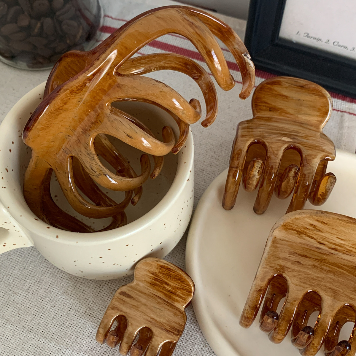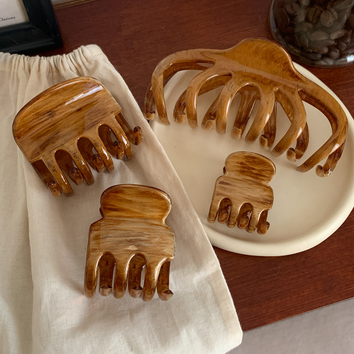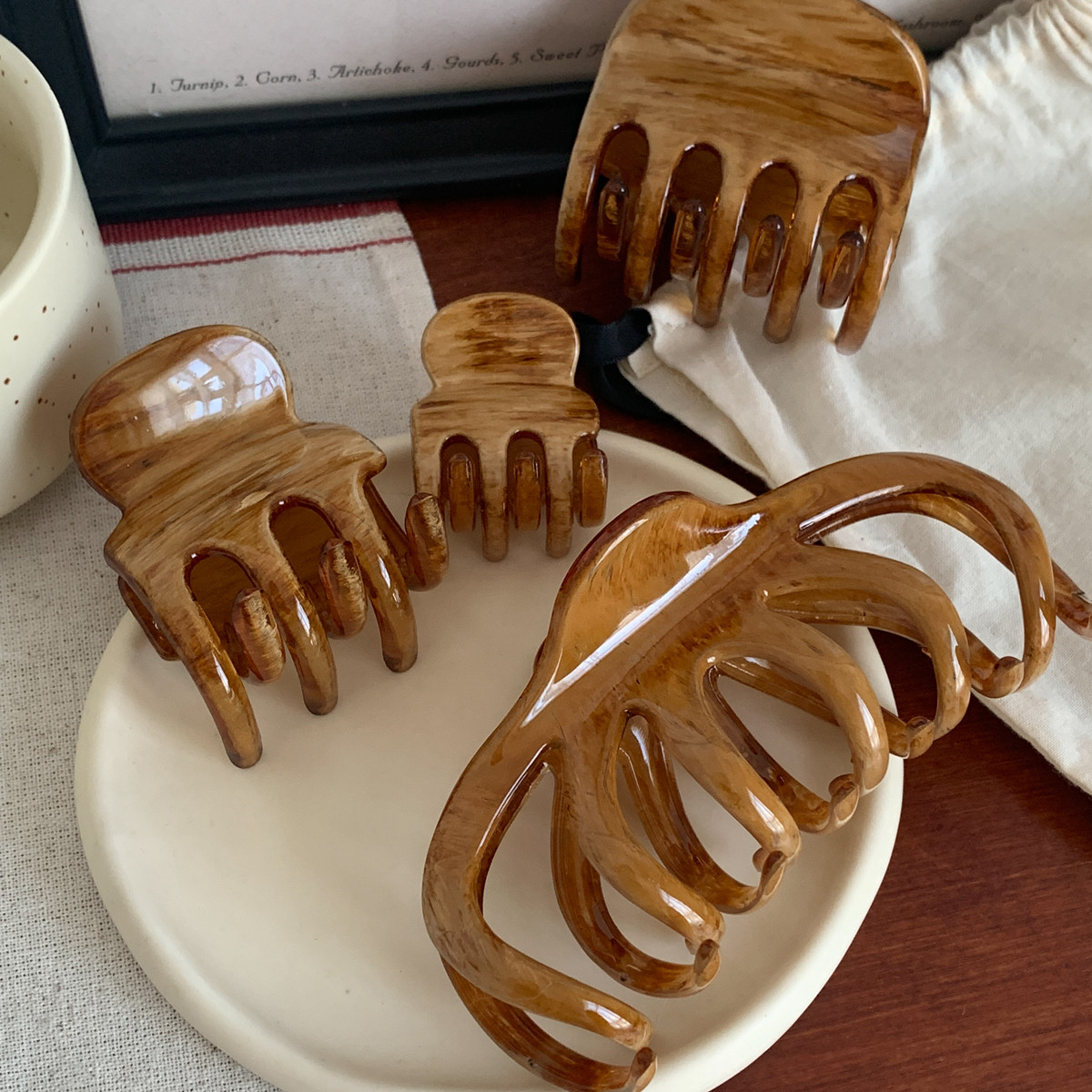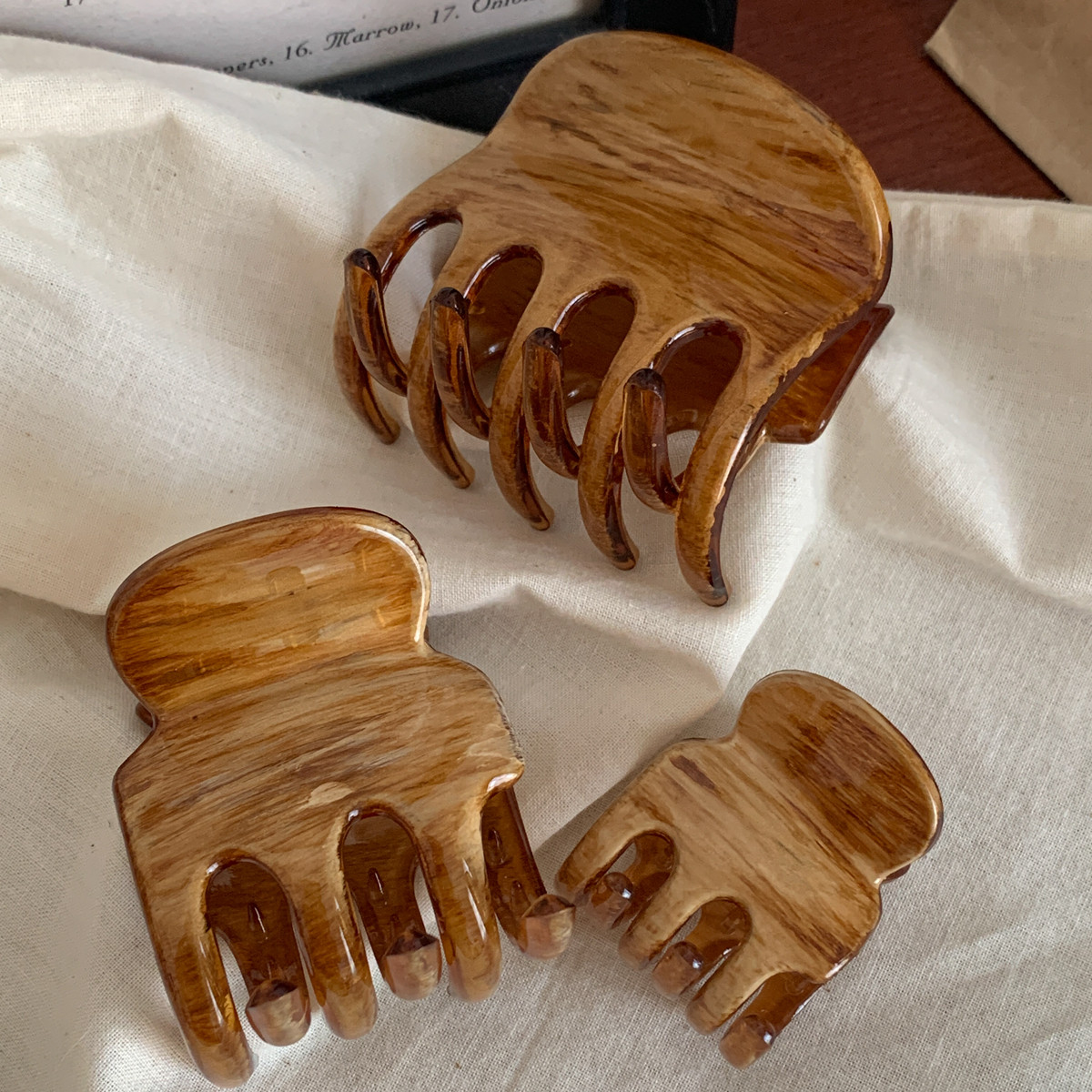ins博主同款油画木纹抓夹复古法式发抓盘发夹子高级感鲨鱼夹发饰