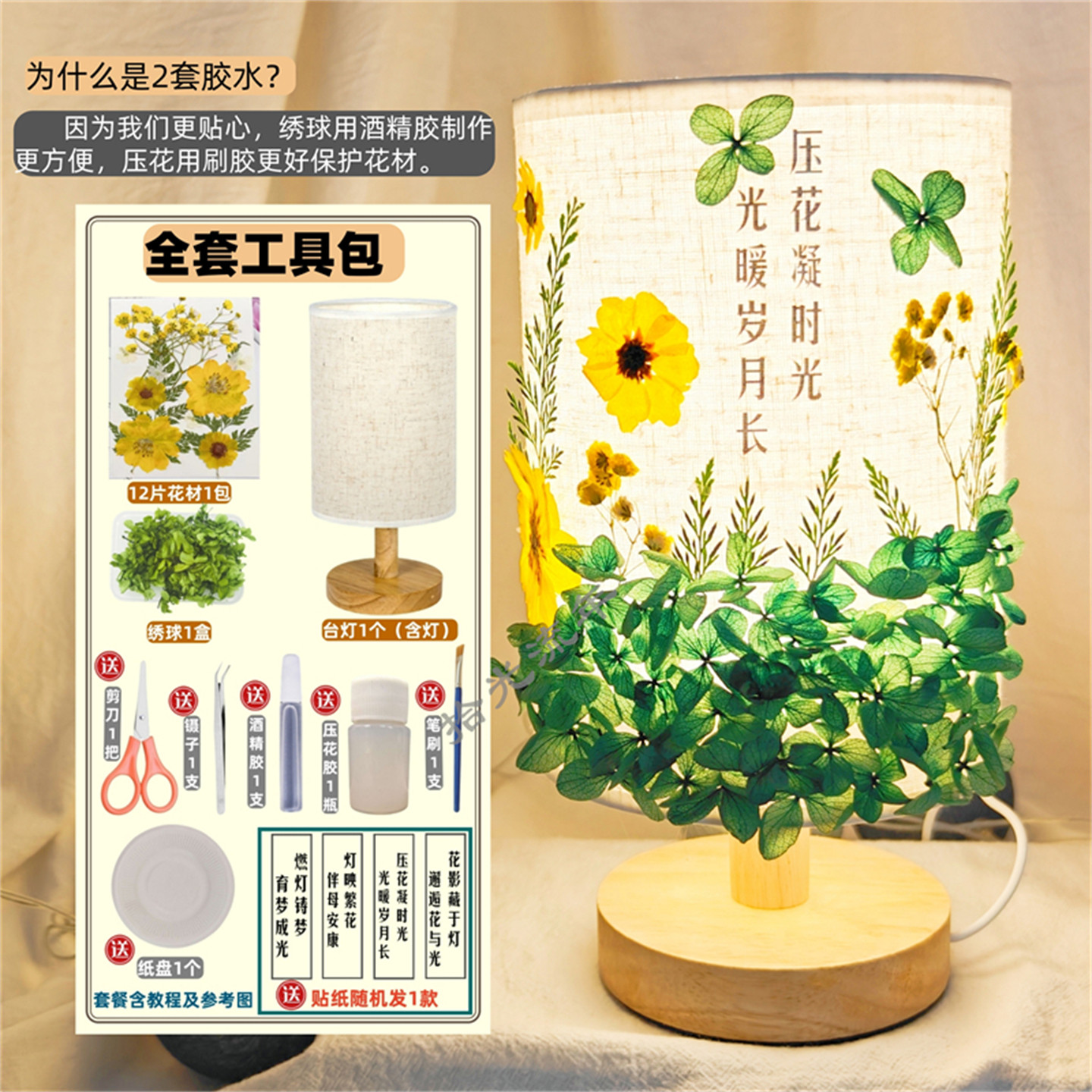 绣球台灯diy材料包三八节压花台灯开学季活动沙龙创意小夜灯摆件