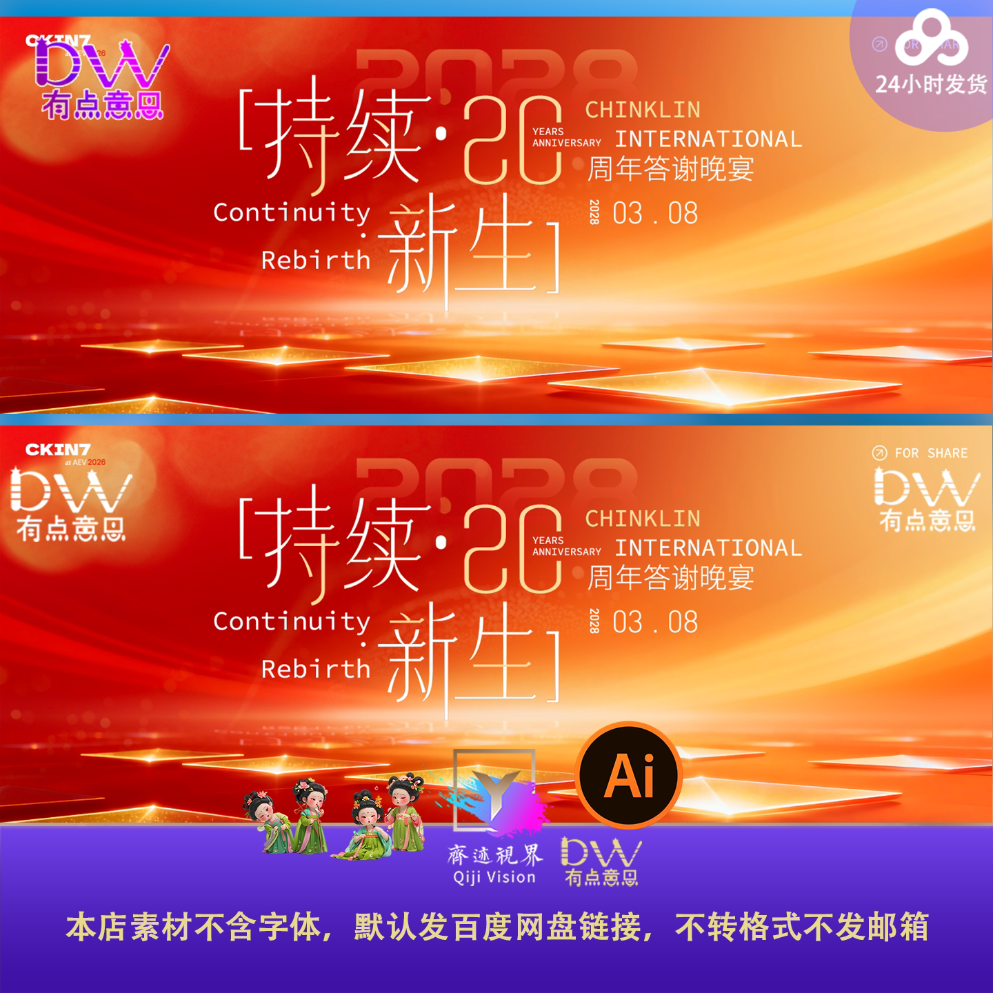 周年答谢晚宴主视觉KV展板背景设计素材红金高端大气鎏金舞台宽屏