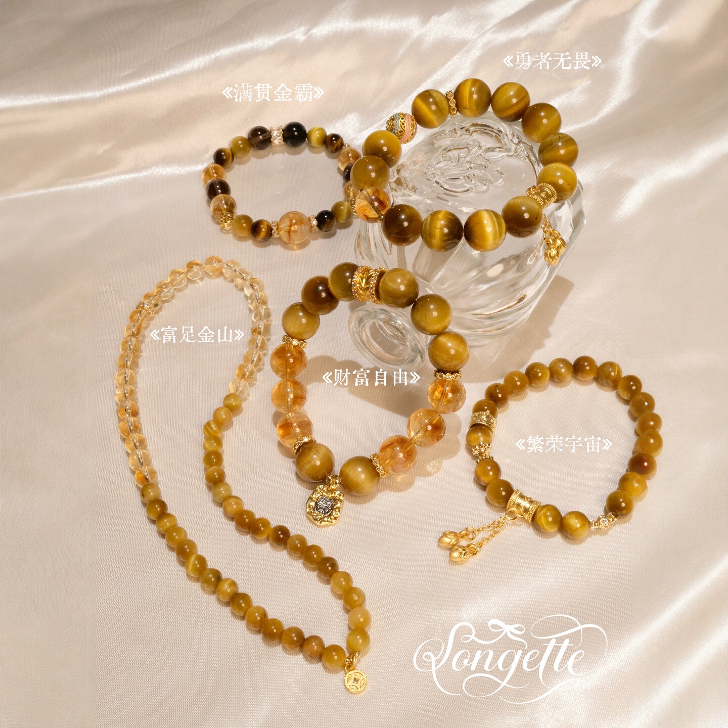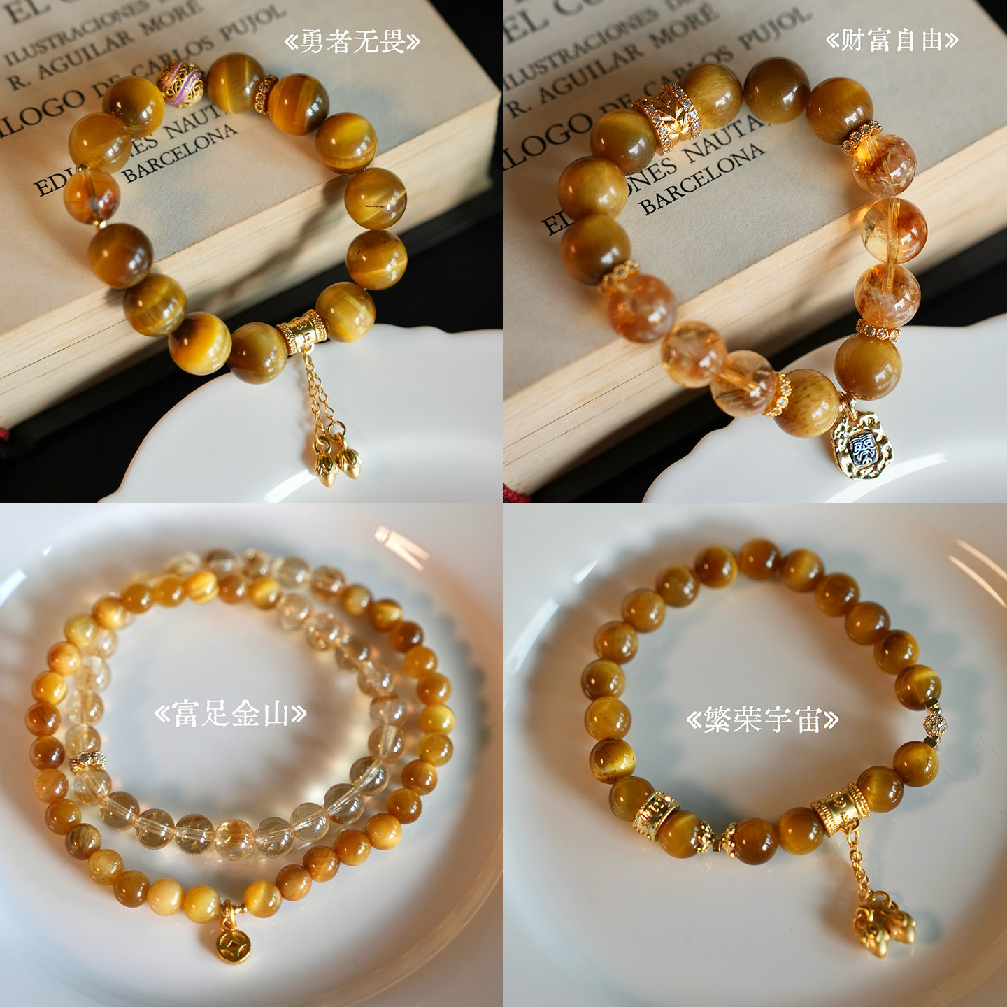 「日进斗金系列」原创设计天然黄塔晶虎眼石招财好运水晶手串