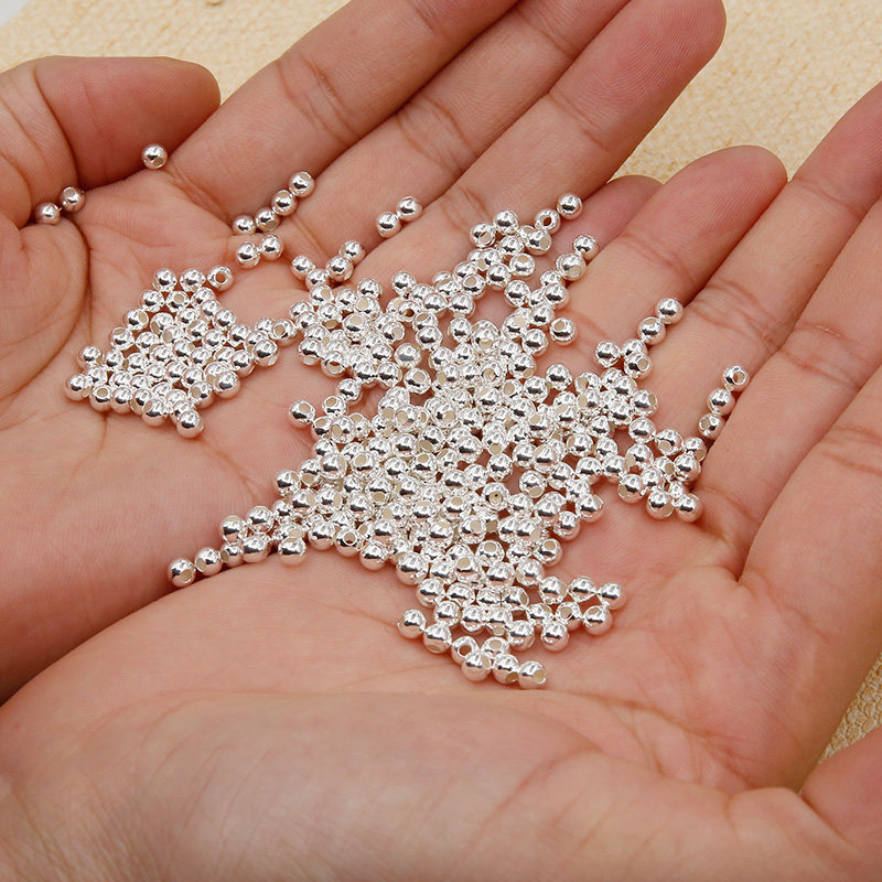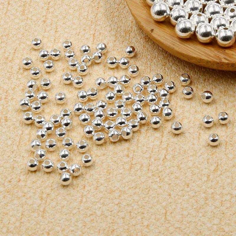 2MM起银珠珠光珠圆珠S925纯银素银散珠手工串珠DIY配件红绳手脚链