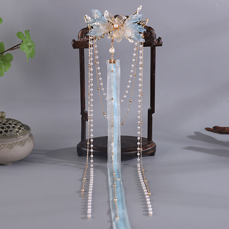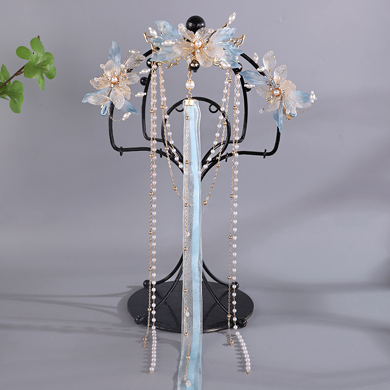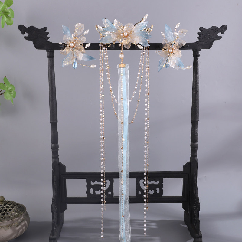 新中式古风汉服发饰旗袍配饰流苏超仙发夹三件套后压步摇头饰古装