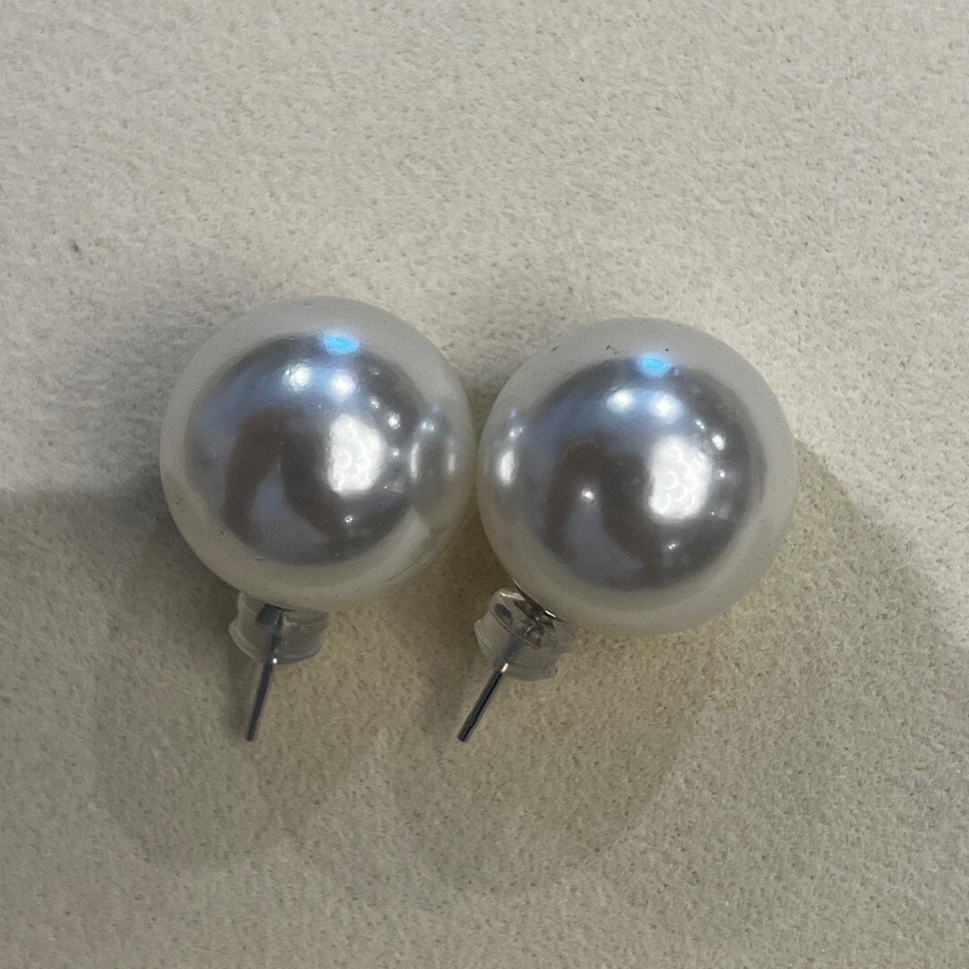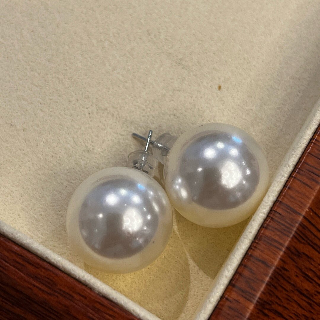 经典ins港风复古18mm巨大强光深海贝珠耳钉925银仿澳白珍珠耳钉