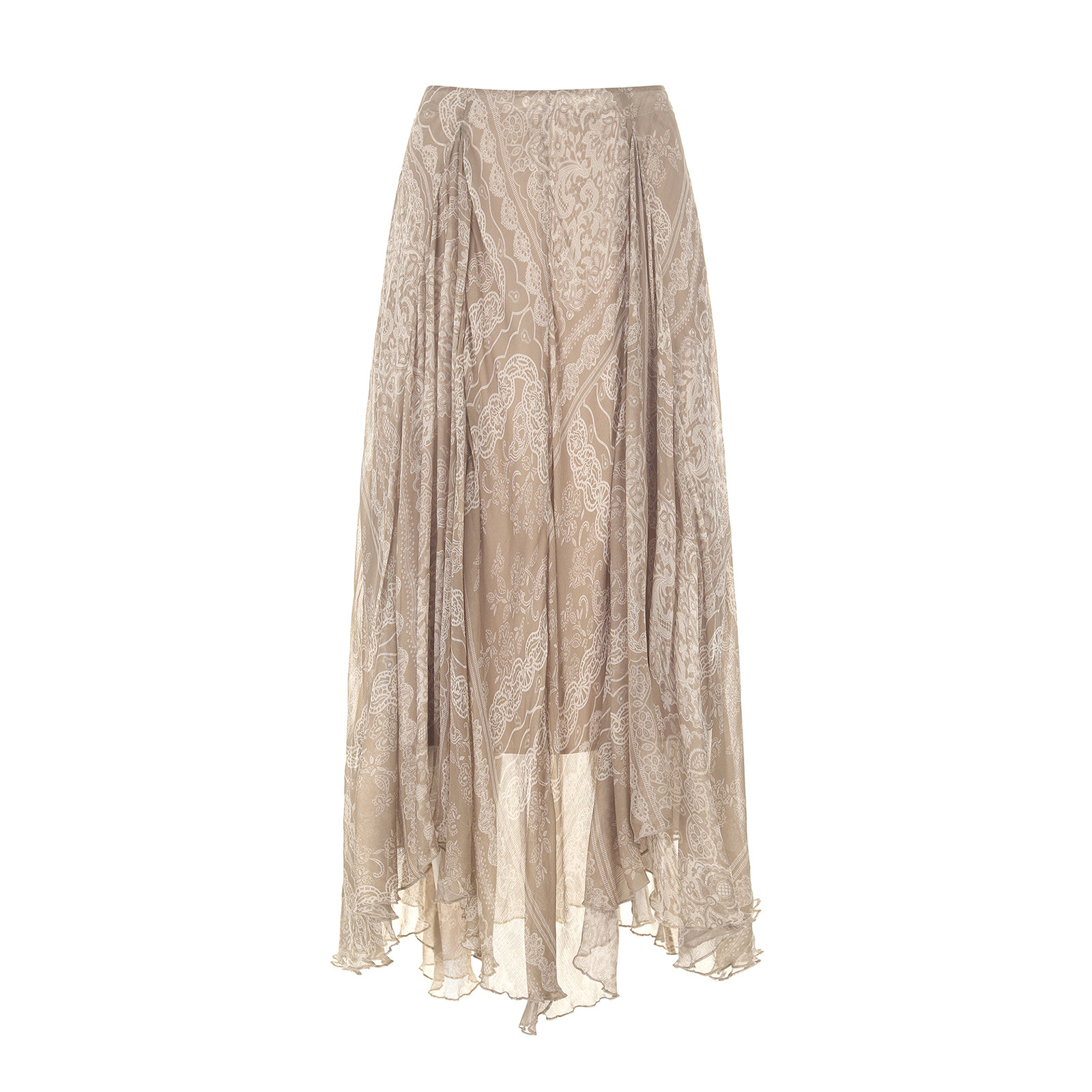 wana try飘逸感大摆杏色底蕾丝印花长裙2025秋季新款女款半身裙