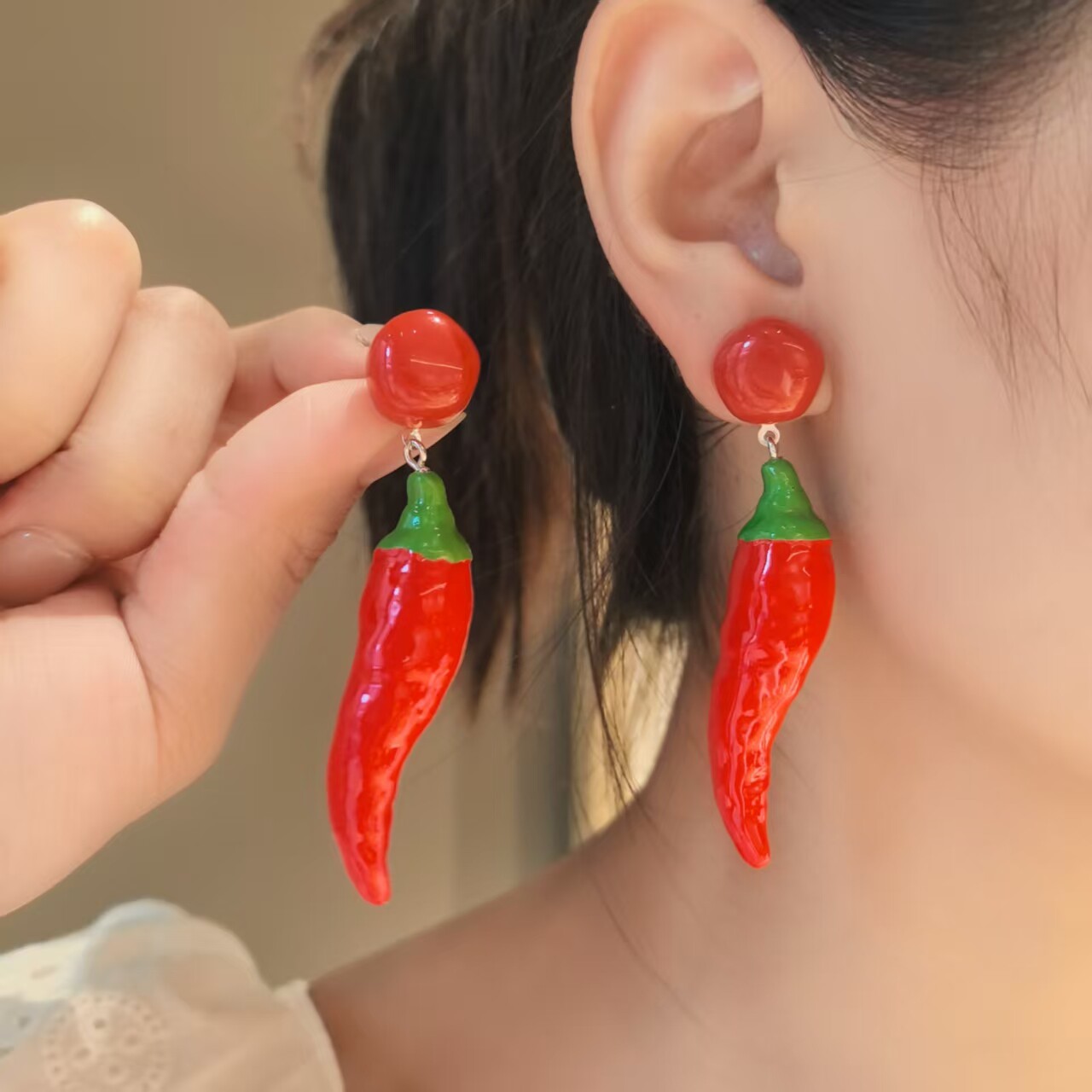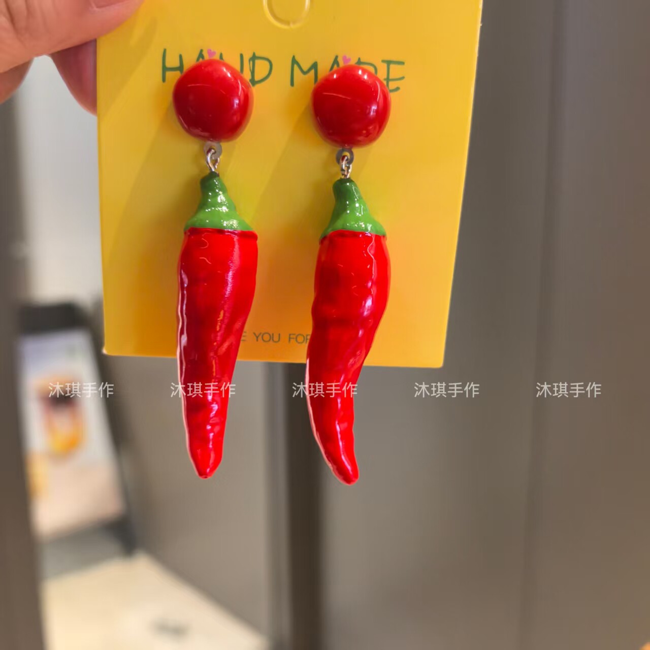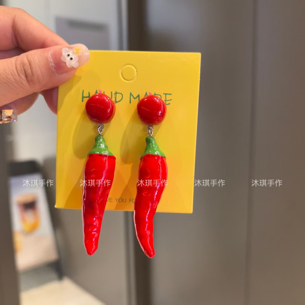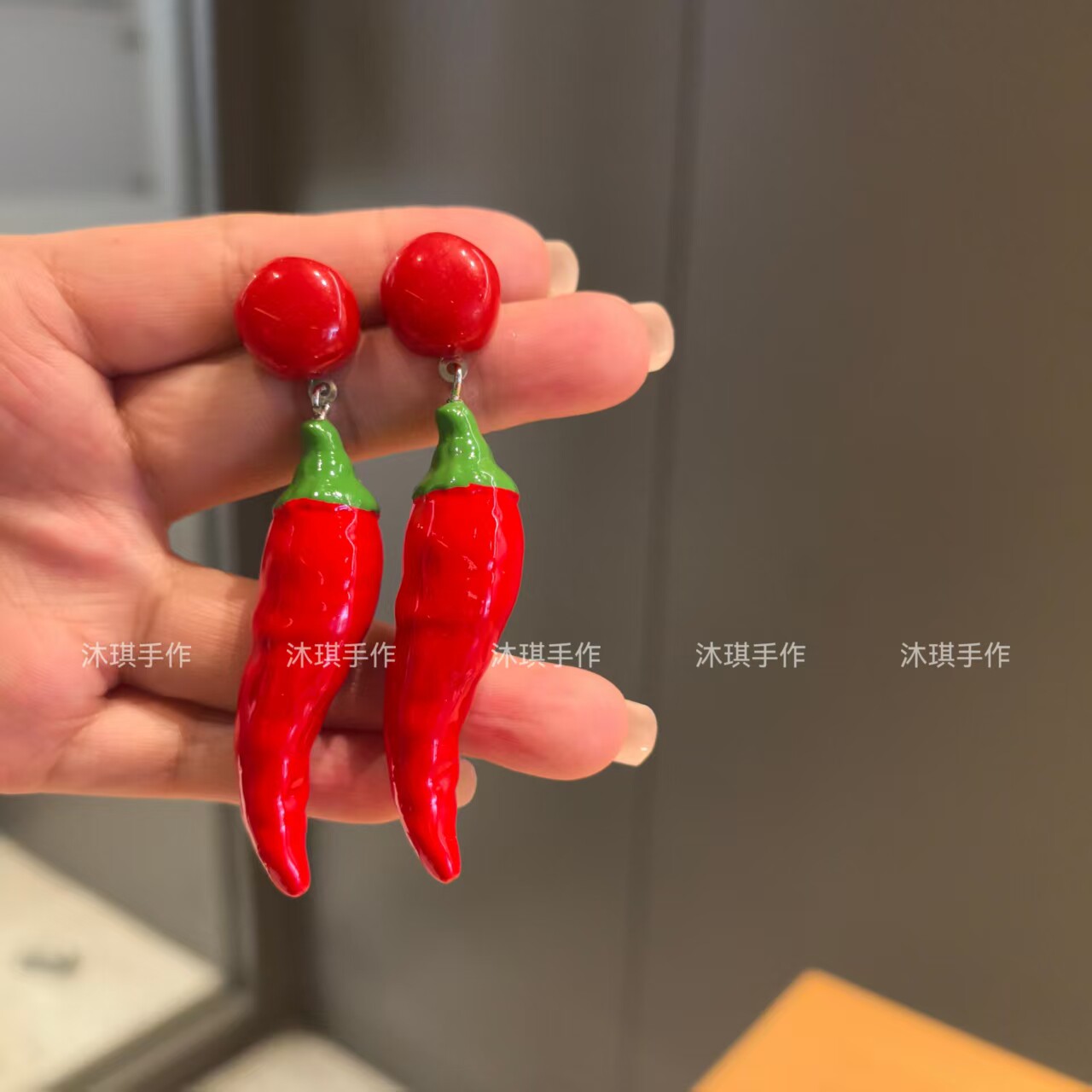 沐琪原创手作独特夸张个性红色辣椒新年耳环女搞怪创意无洞耳夹
