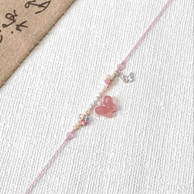 粉色冰透蝴蝶项链女款轻奢小众设计高级感甜美百搭锁骨链时尚编绳