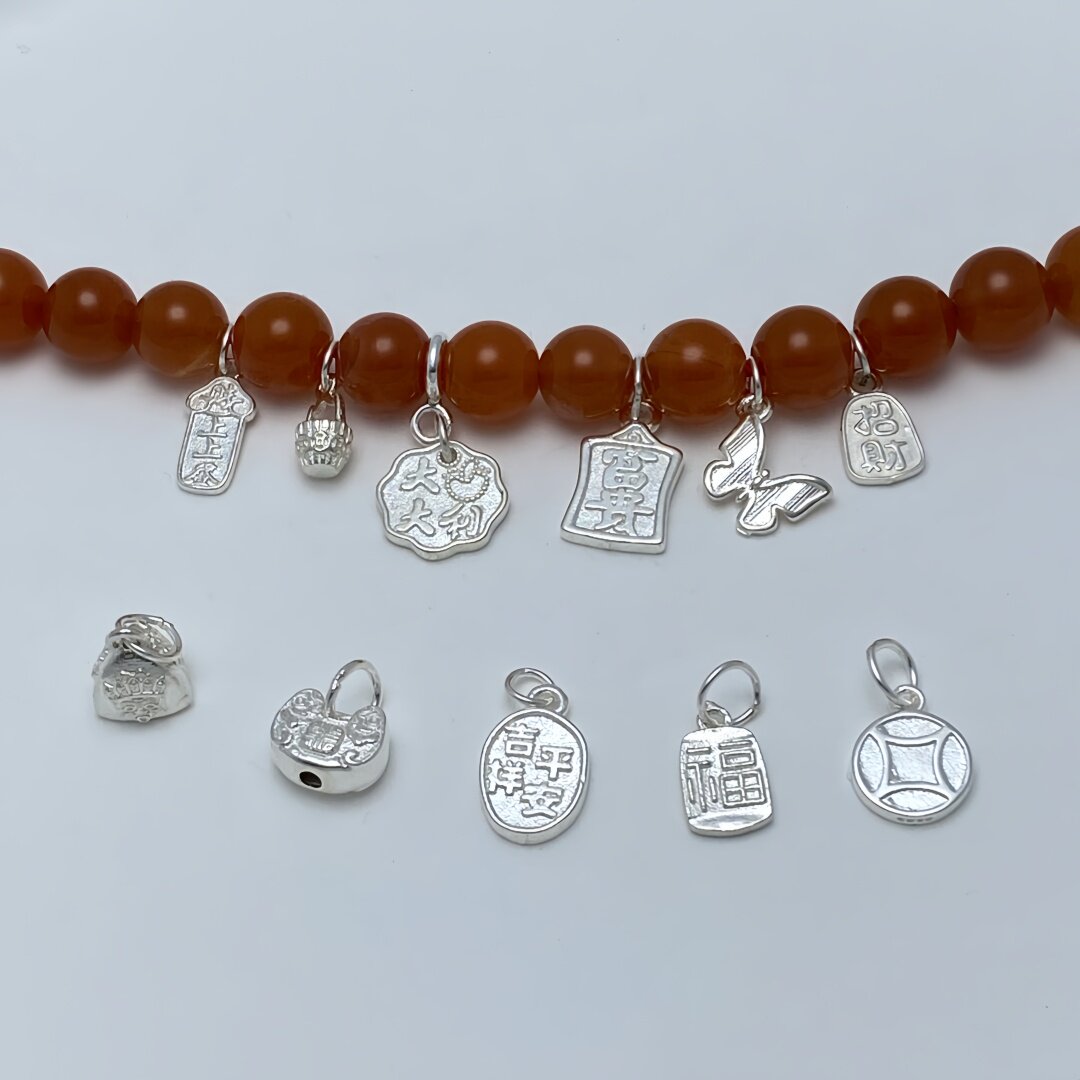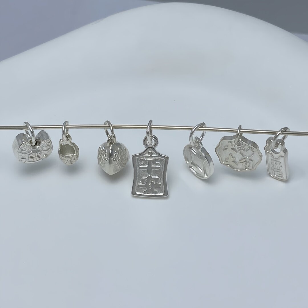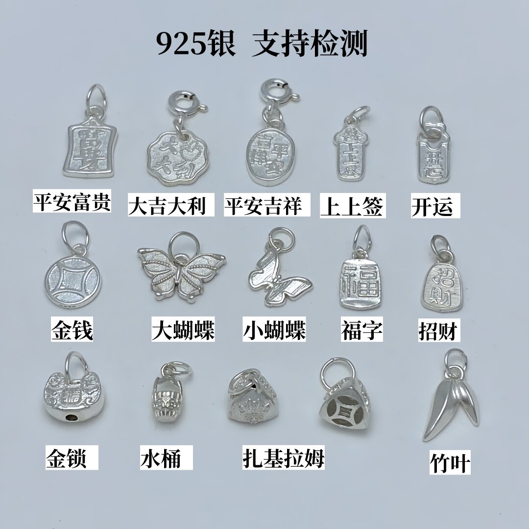 925纯银蝴蝶吊坠平安吉祥上上签福牌挂件diy手工串珠手链配件