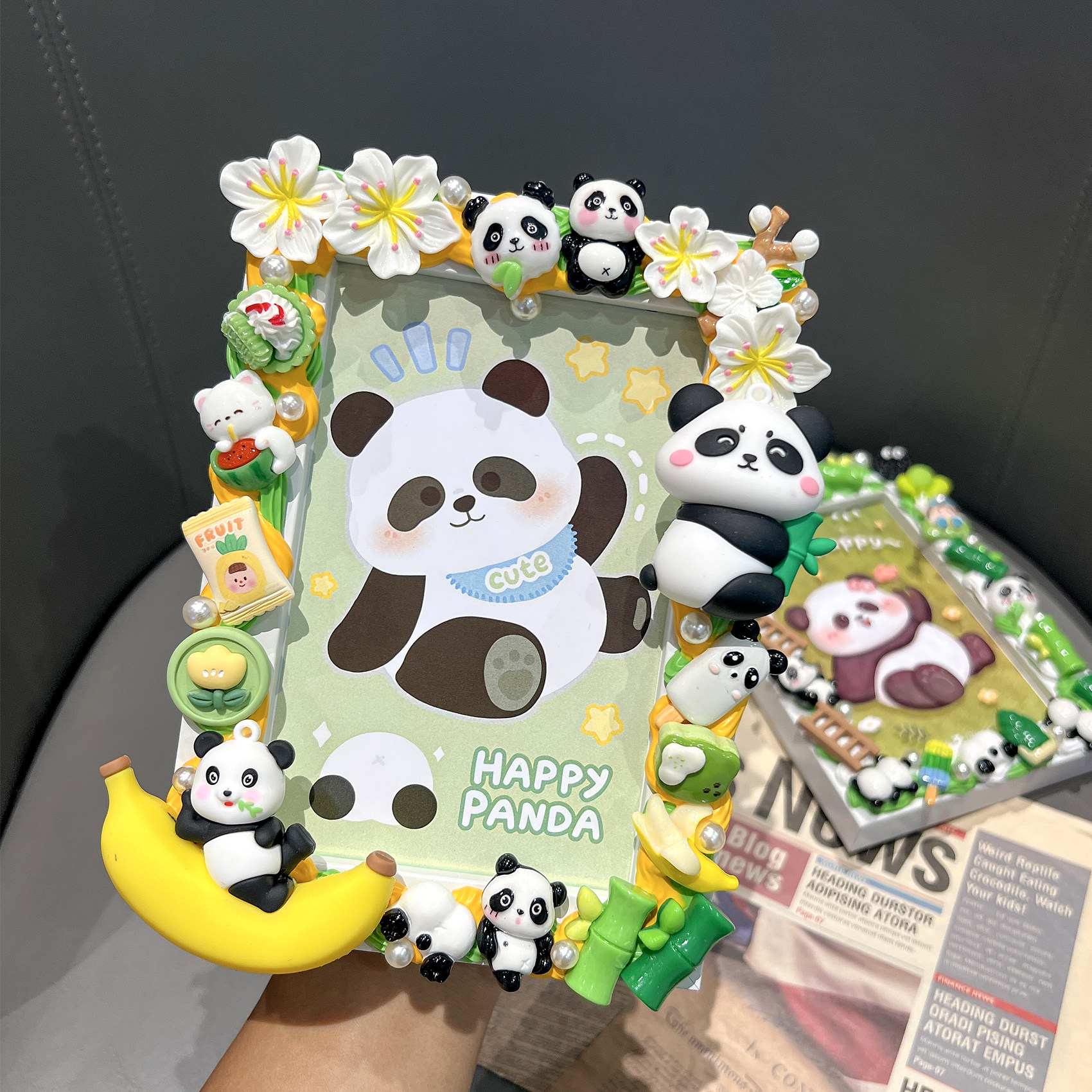 熊猫相框diy材料包 儿童学生旅游纪念相框奶油胶手工自制套装礼物