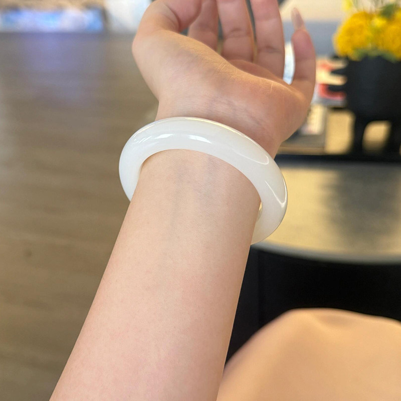 仟喜梵"蘅皋兰渚"和田青白玉翡翠平替女款阿富汗真玉手镯子送礼