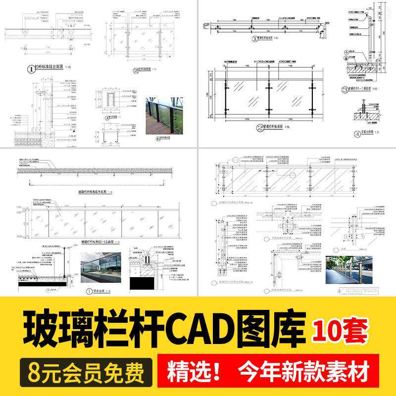 户外玻璃栏杆CAD施工图 楼梯不锈钢护栏扶手做法大样图节点详图
