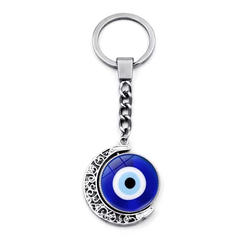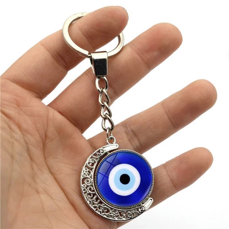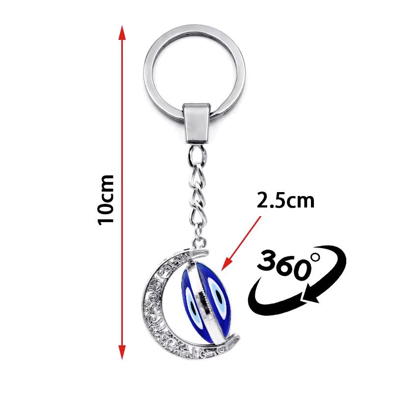 土耳其邪恶之眼钥匙扣挂件双面旋转月亮吊坠蓝色眼睛钥匙链配饰