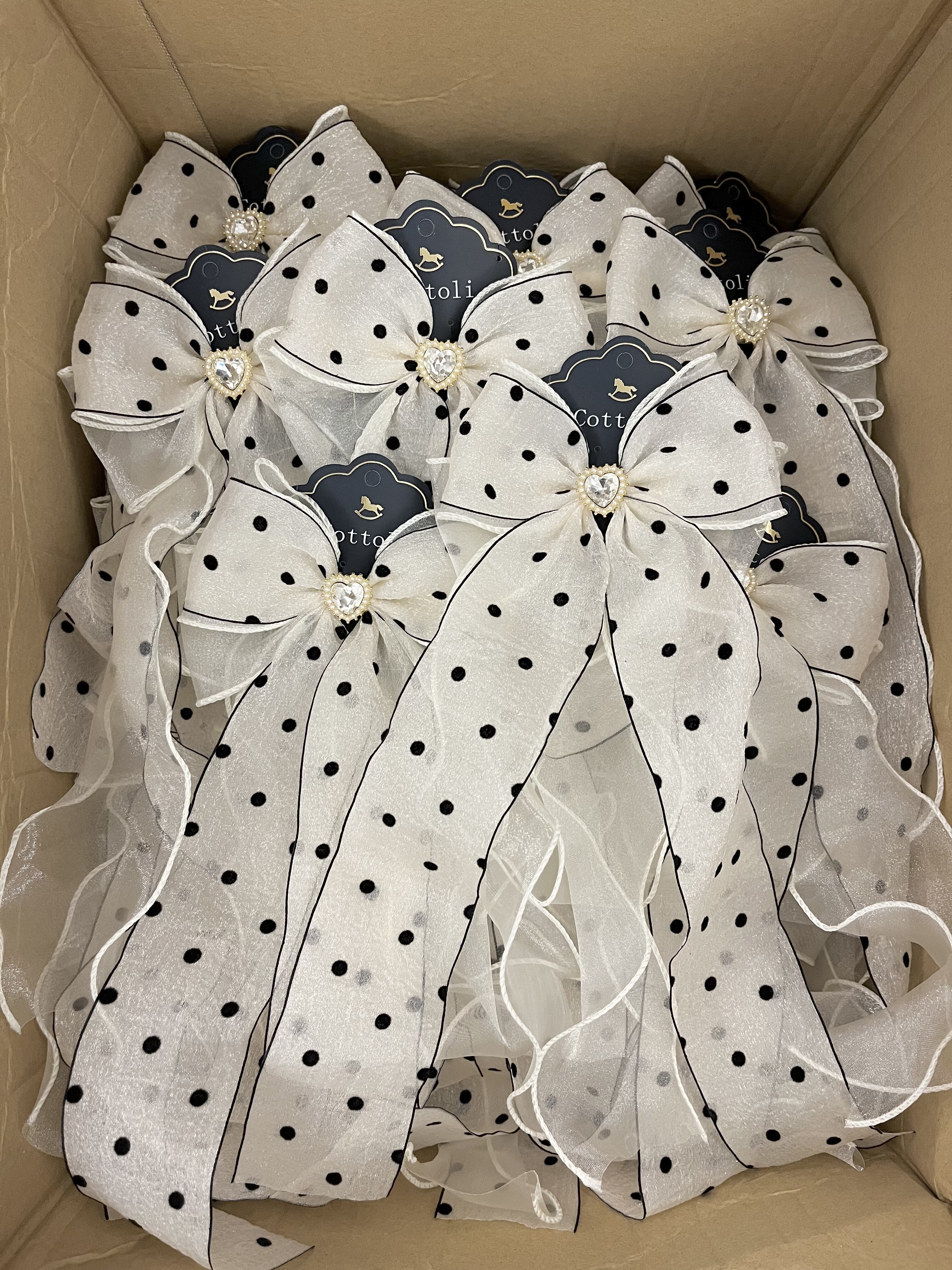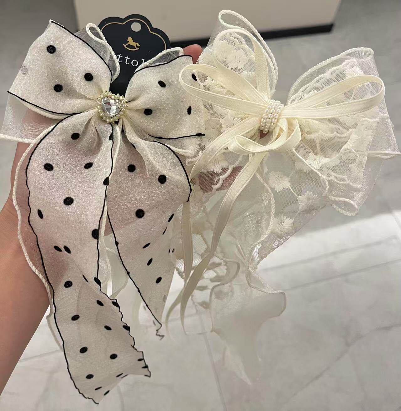 现货日单木马蝴蝶结发饰发夹波点钻飘带点点绢纱发圈公主气质百搭