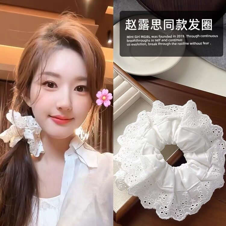赵露思同款法式浪漫大号蕾丝发圈双层花边镂空大肠圈发饰发圈