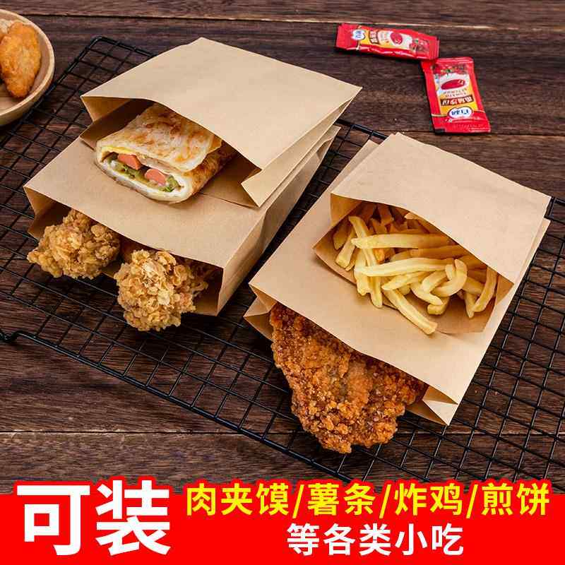 加厚防油牛皮纸袋排骨打包袋小吃鸡排纸袋烧烤炸串食品包装袋定做