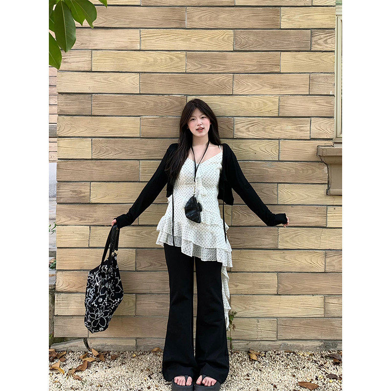 巨鹿工作室微胖mm韩系覆古波点不规则木耳边吊带洋装叠穿百搭裙