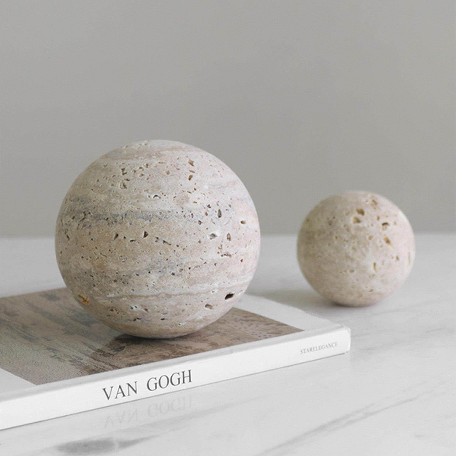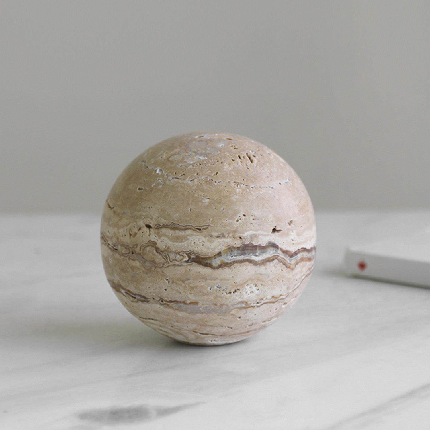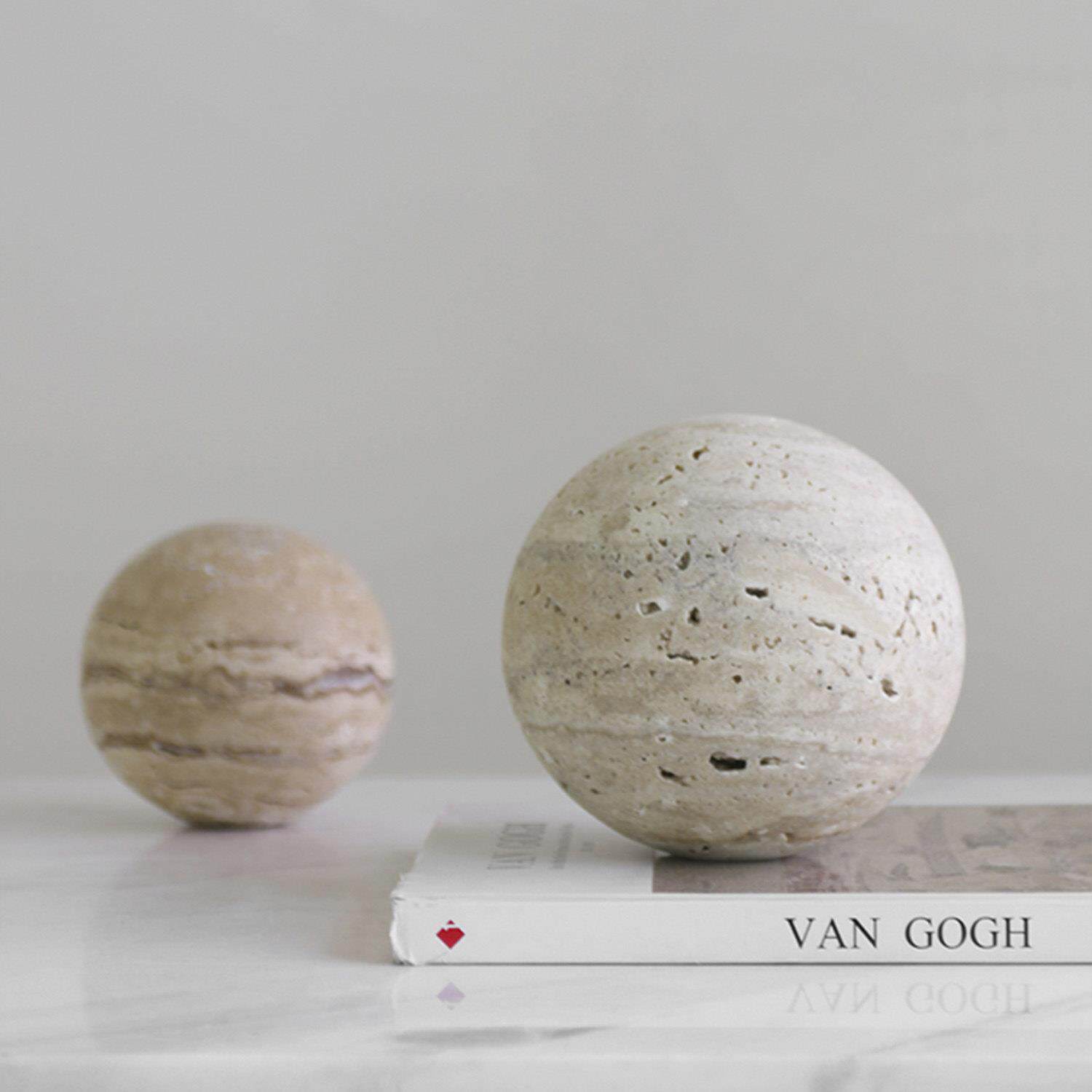 现代简约黄洞大理石圆球摆件镇纸样板间售楼处客厅装饰品拍摄道具